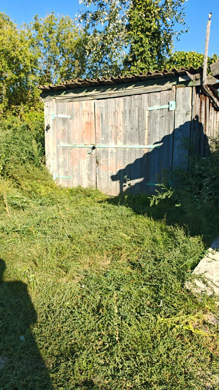 Участок прямоугольный 18 соток, на нем: гараж, в дальнем конце в отдалении от дома большой хлев для животных, загон для выгула, курятник.
