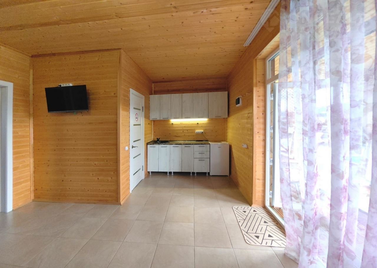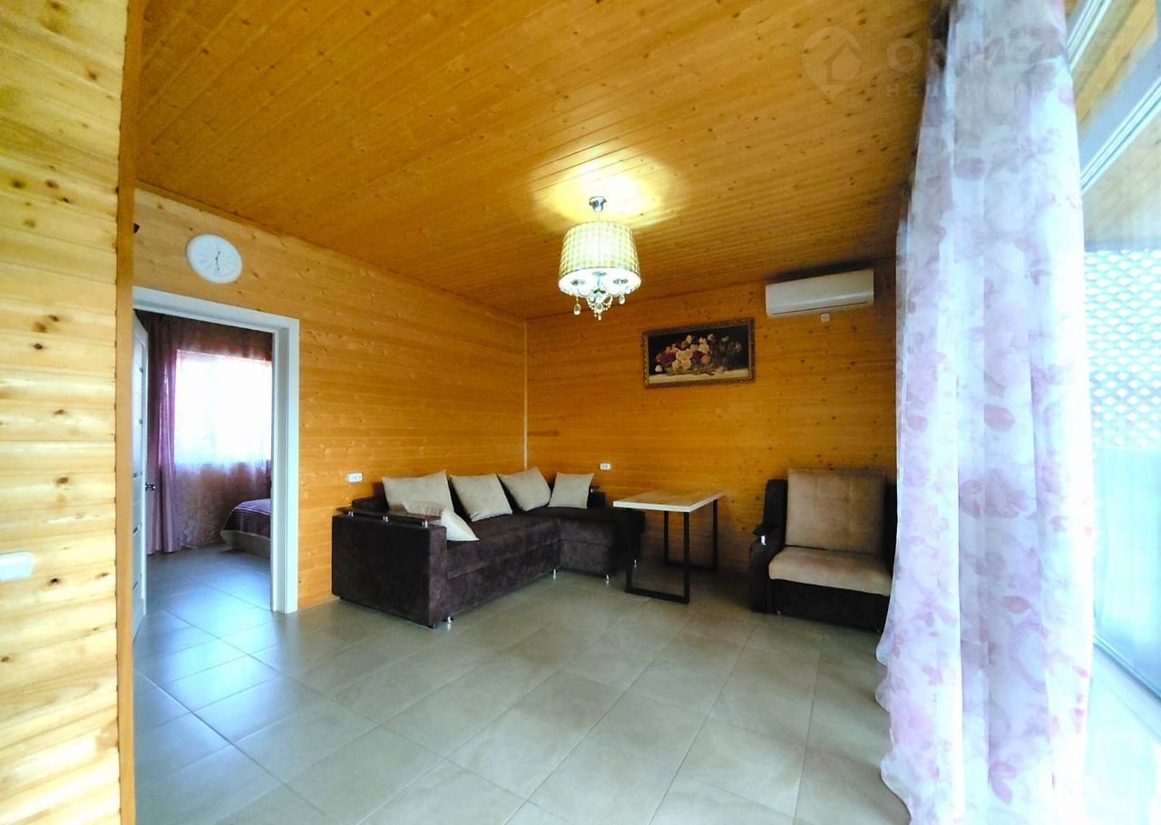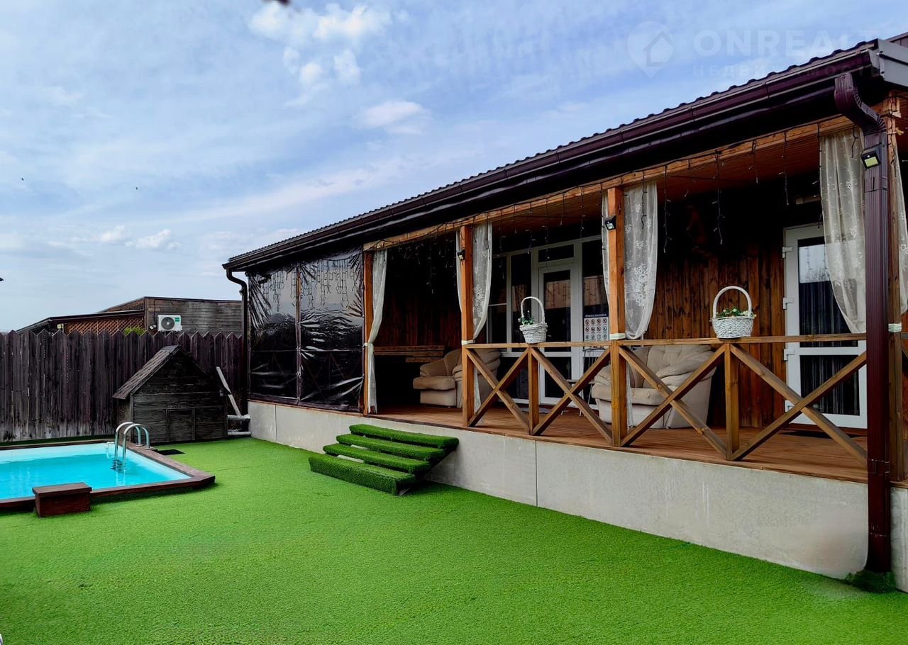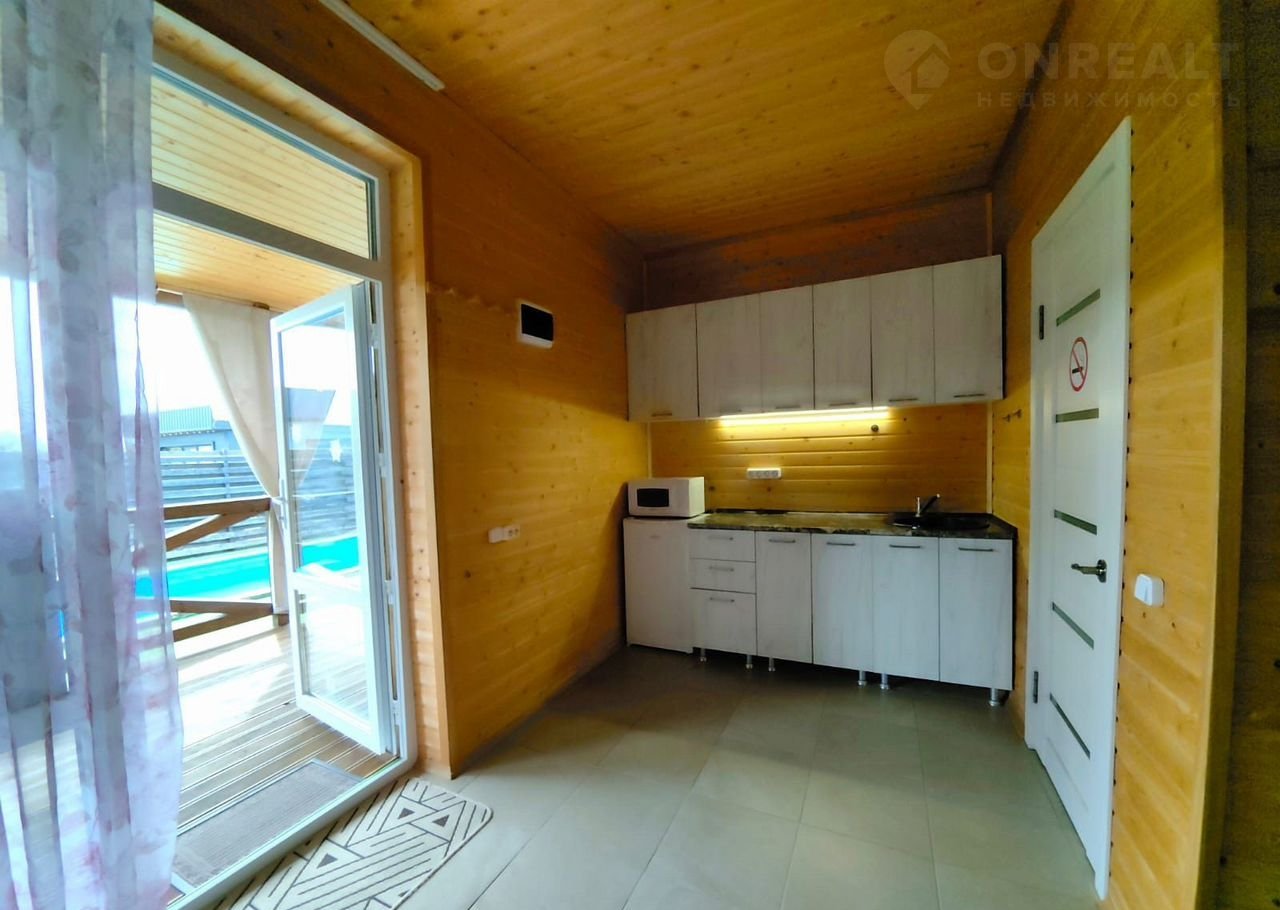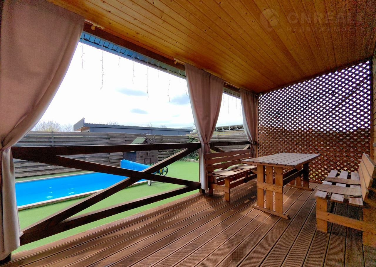 - Первый дом (57,9 м²): две спальни, просторная кухня-гостиная, сауна, большая терраса, бассейн 3×8 м.