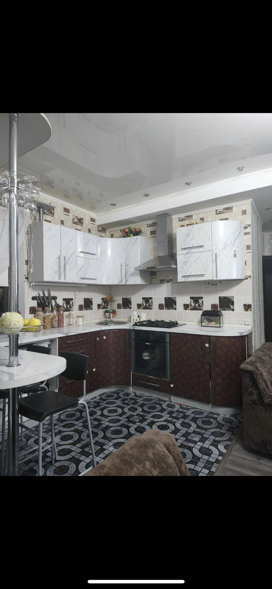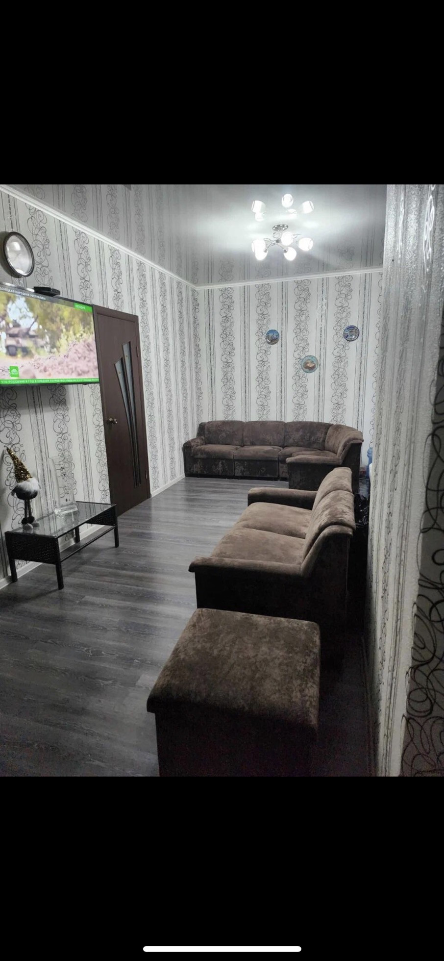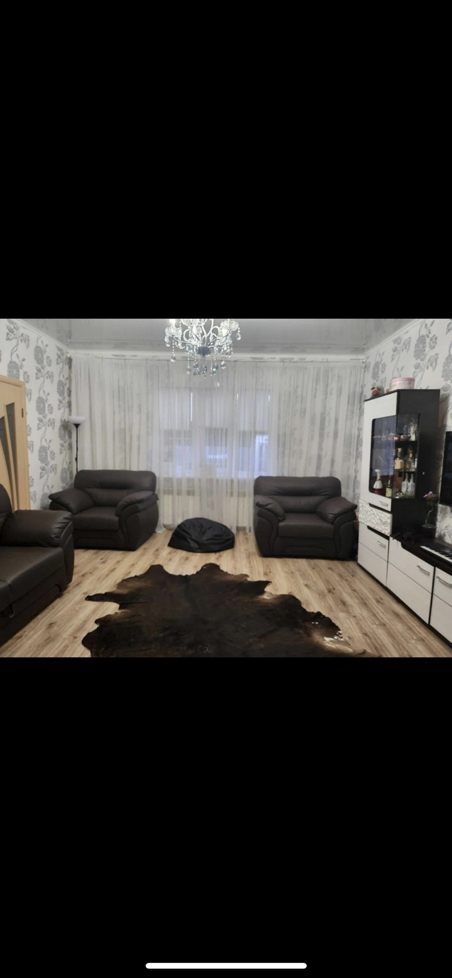 100м.кв, кухня-студия, 3 комнаты, есть веранда.