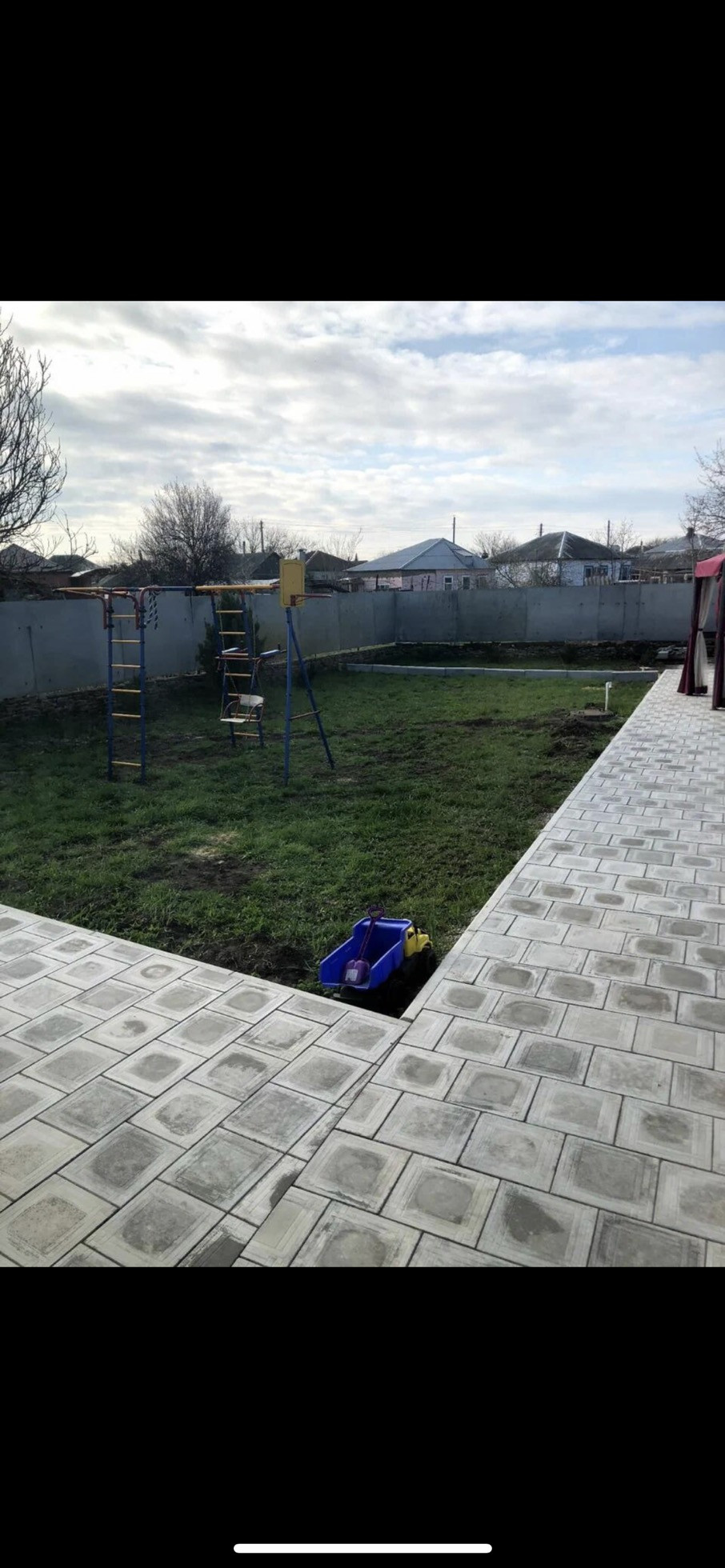 Гараж в доме, детская площадка, двор ухоженный, летняя кухня с газом.