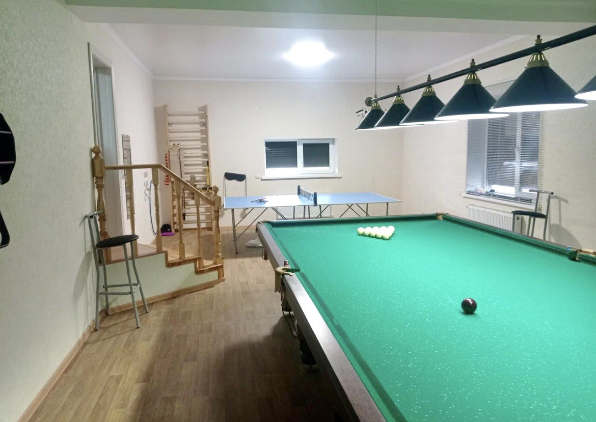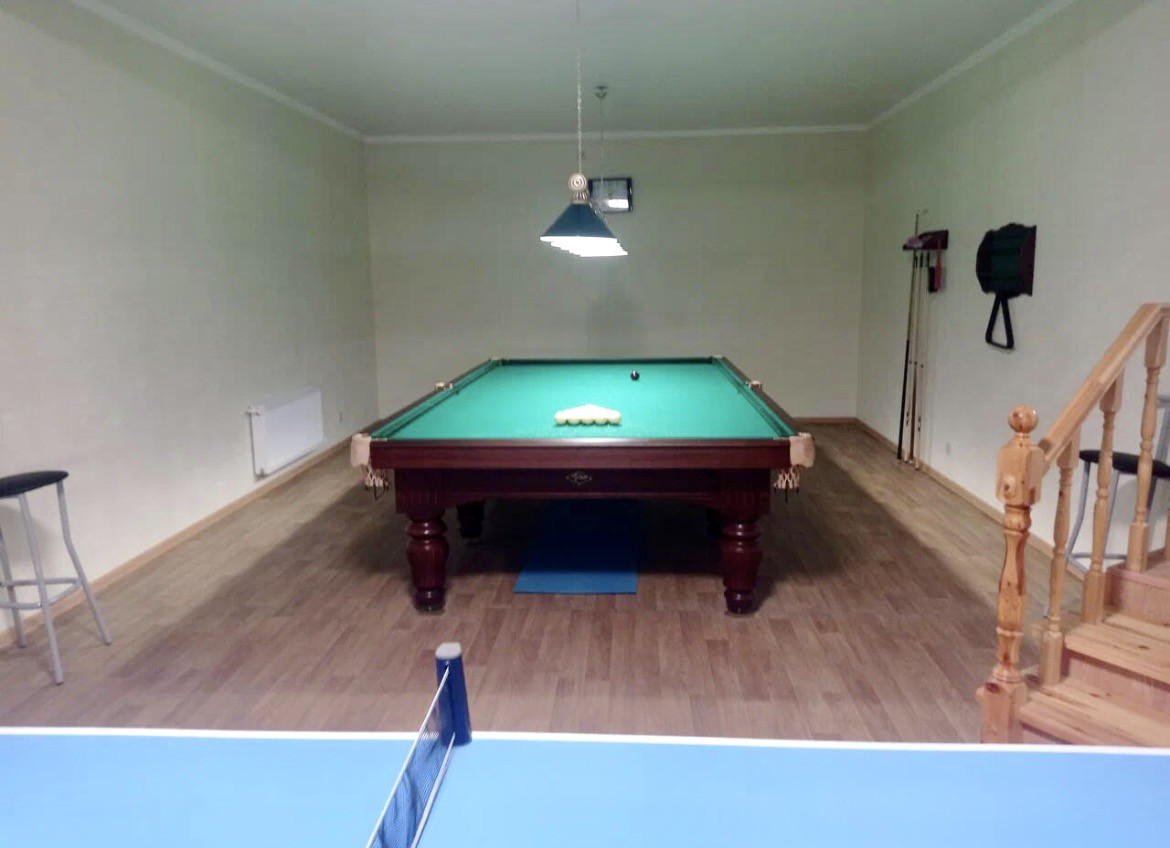 Комната для отдыха с бильярдом и настольным теннисом.