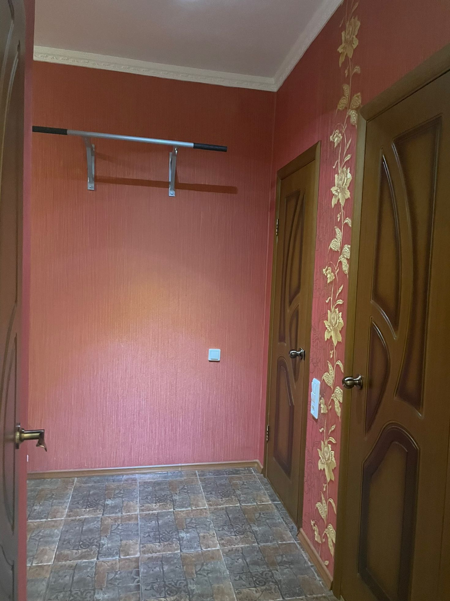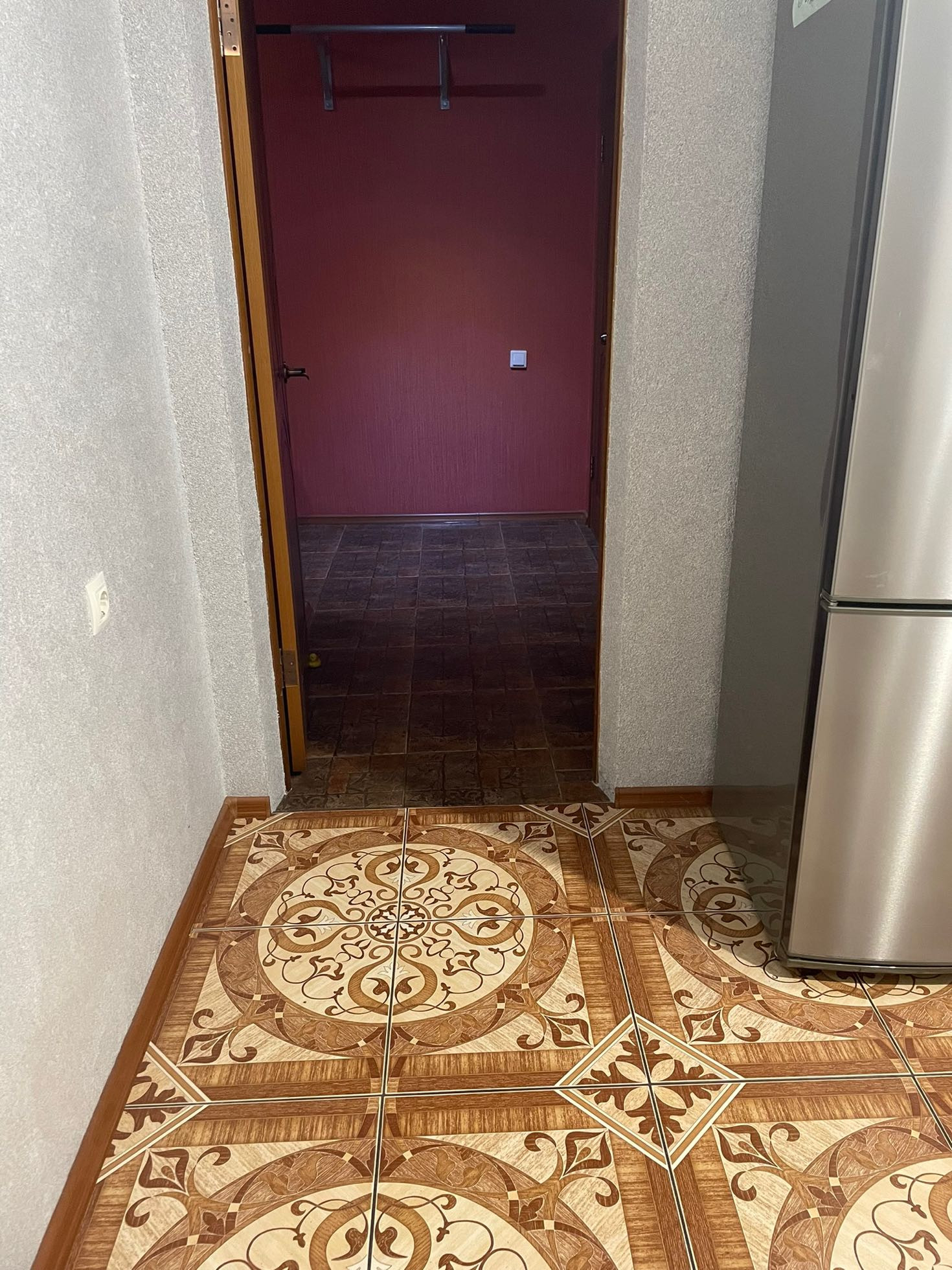 Полы керамогранит, плитка и ламинат Tarkett. Стены жидкие обои(кухня), кафель (ванная и туалет), в комнатах виниловые обои.