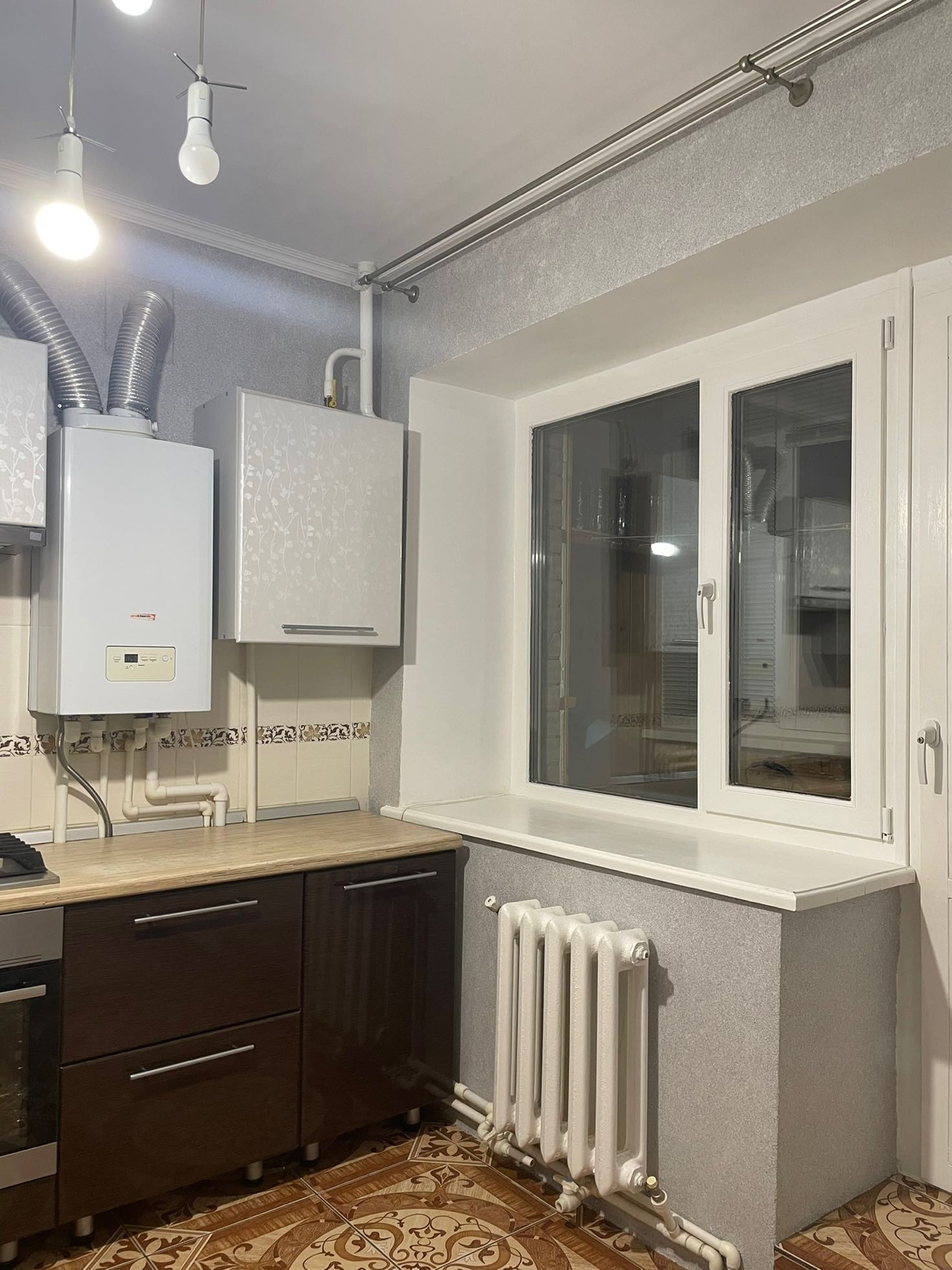Чугунные радиаторы по 12 секций в каждой комнате. Газовый настенный котел отопления Протерм Гепард позволяет поддерживать комфортный температурный режим в Вашей квартире. Автономное отопление значительно уменьшает коммунальные платежи.
