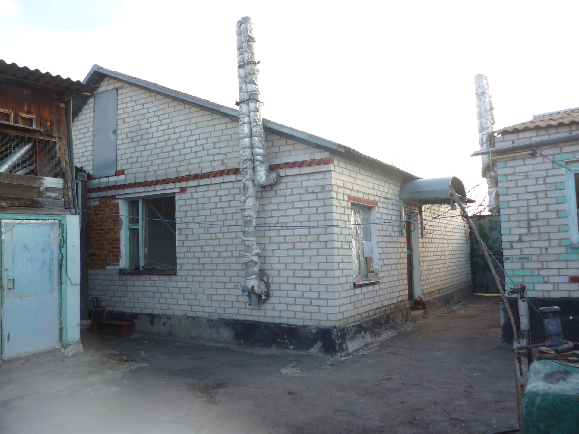 Первый дом 1975 года постройки, 63 кв.м., шлакоблок обложен кирпичом, отапливается газ -котлом, вода от скважины, канализация яма. 4 комнаты. Необходим косметический ремонт.