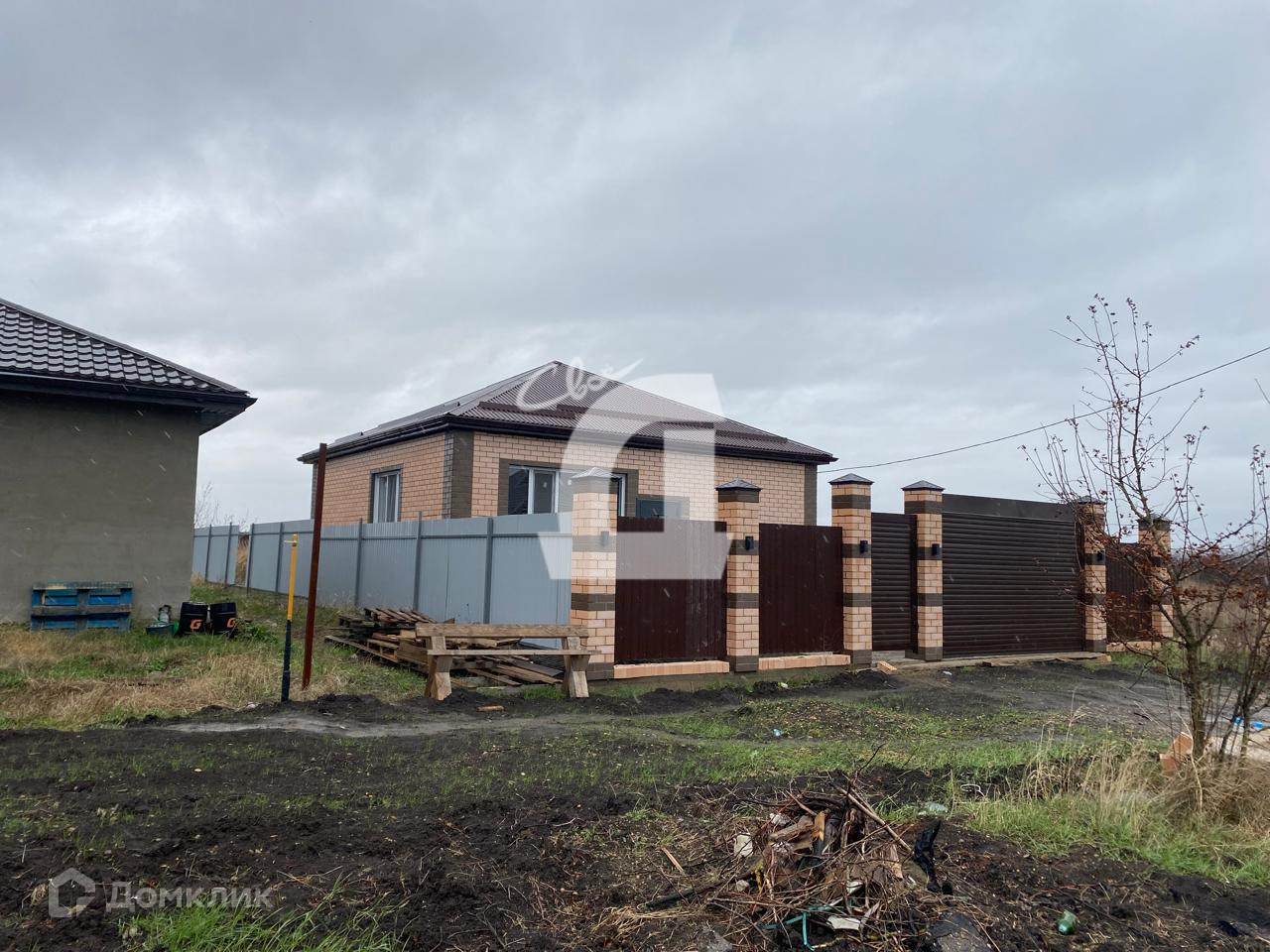 Новая постройка 2023 г., сделан ремонт под ключ. Газобетон, фундамент бетонная плита, облицовка кирпич, крыша утеплена. Прилегающая территория пригодна для озеленения. Возведен забор.