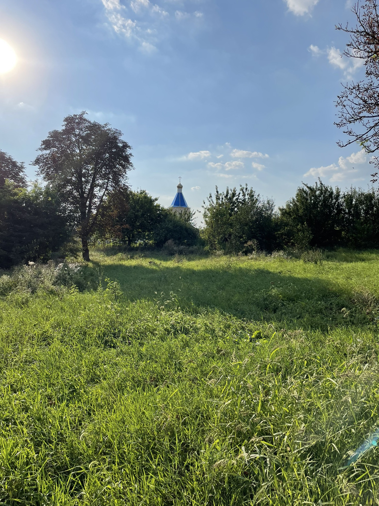 Земельный участок 15 соток, в собственности, для жилого строительства, через дорогу от реки. Располагается на возвышенности, с него открываются красивые виды на реку.