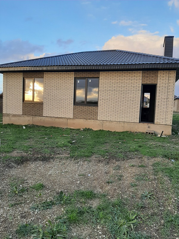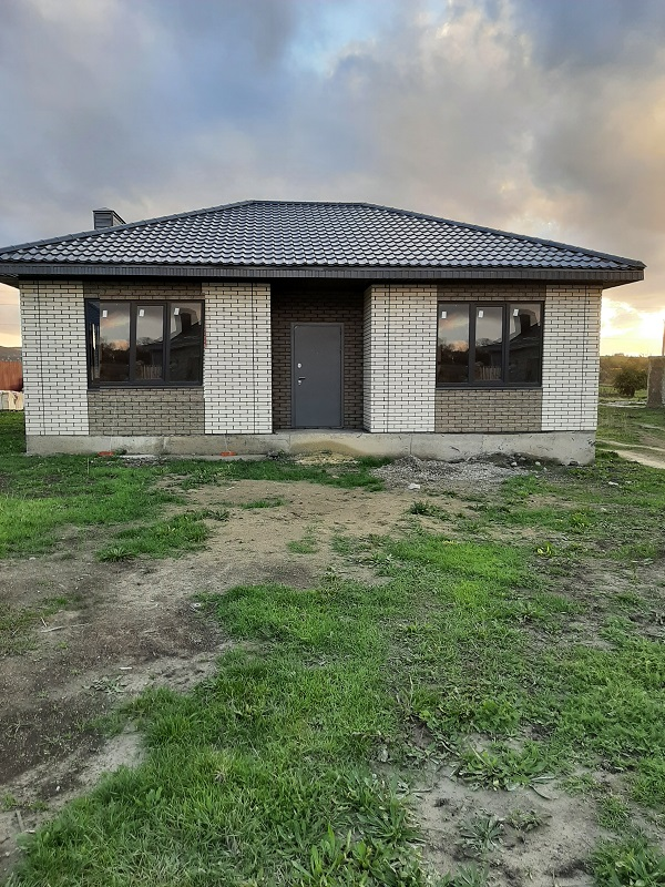 ID 5293    Предлагаем к продаже новый одноэтажный дом в кирпиче-92 кв.м. на 5 сотках земли ( назначение ЛПХ, есть возможность увеличить участок до 10 соток на данном этапе). Выведены гильзы под воду и канализацию, электричество-15 кв. (электрика и отопление в стоимость не входят), но все можно сделать за доп. плату по вашему желанию. Перекрытие- облегченное, высота потолков-2.80. Планировка: прихожая, кухня-гостиная с выходом на задний двор ( где можно расположить большую террасу), две спальни и совмещенный сан узел.  Пешая доступность к школе, детскому саду, магазинам и рынку. Хорошо работает общественный транспорт.