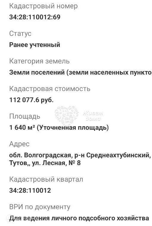 Участок по адресу: х. Тутов, ул. Лесная, обл. Волгоградская, р-н Среднеахтубинский