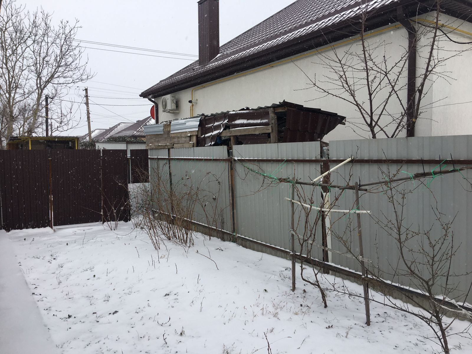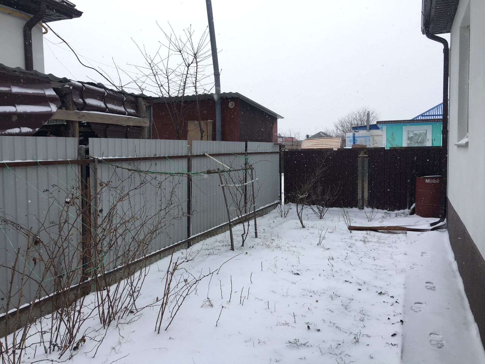 Дом огорожен металлопрофилем, заезд для авто,плодоносящие деревья,розы и небольшой огородик!