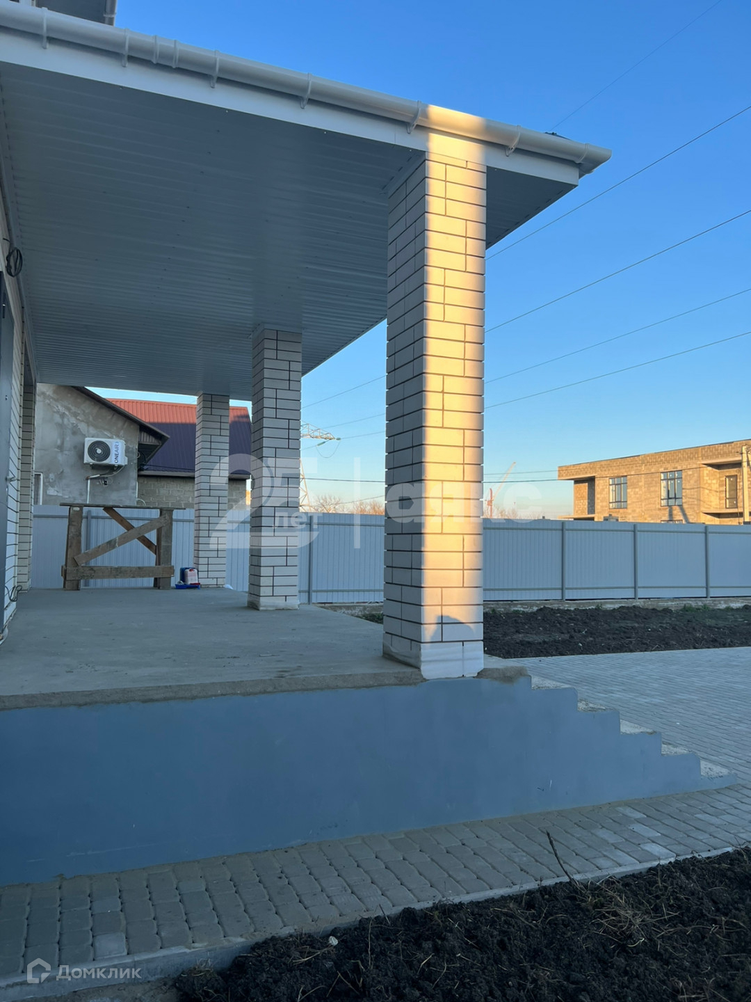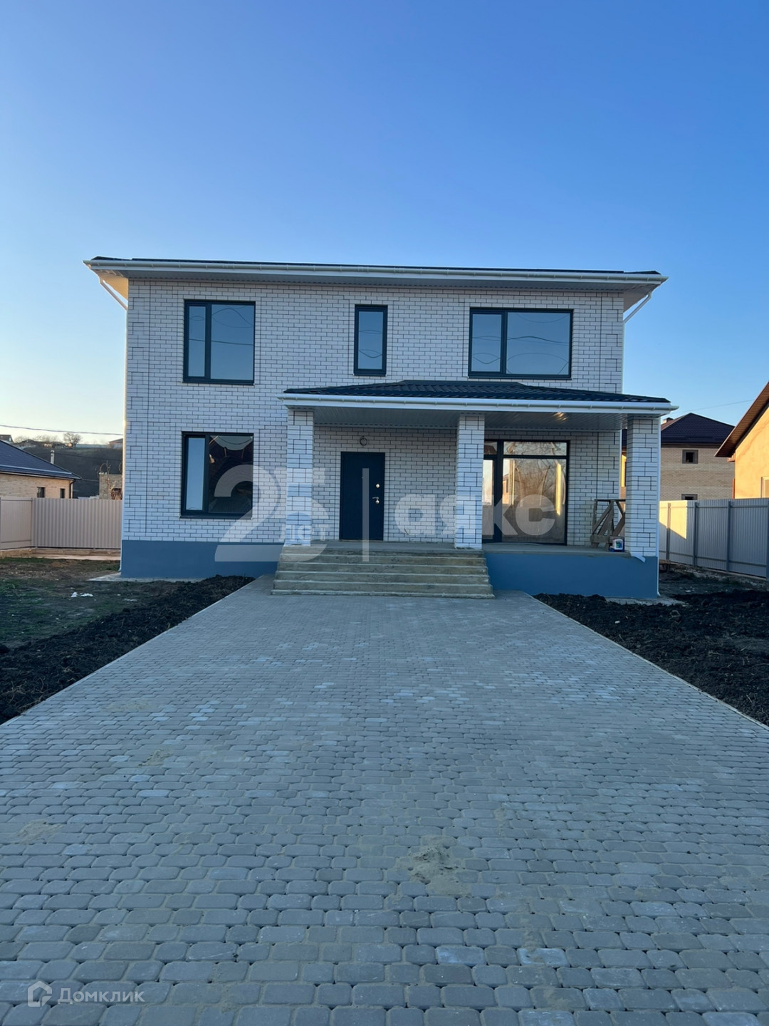 Придомовая территория вымощена тротуарной плиткой, установлен забор, ворота.