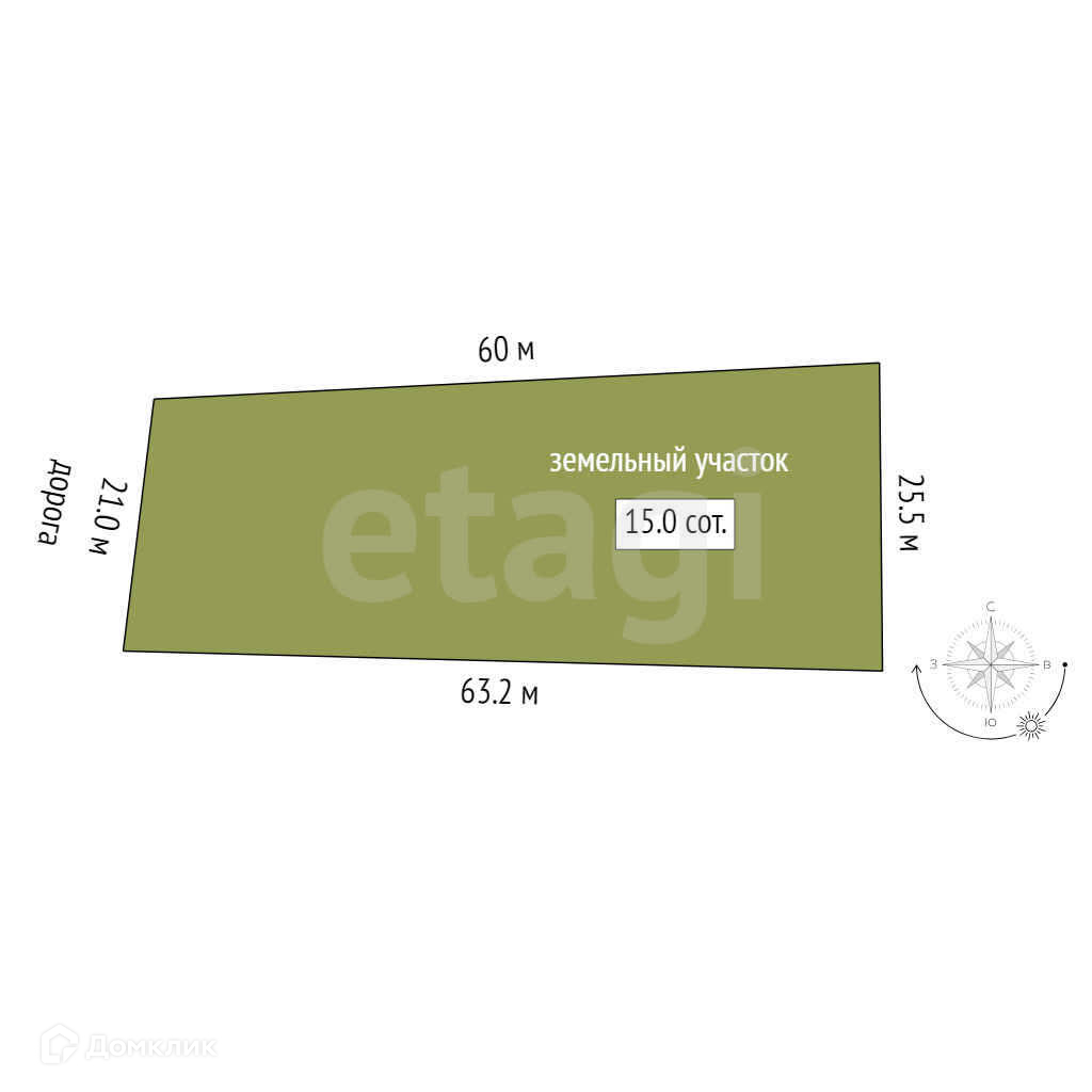 В продаже земельный участок общей площадью 15 соток, 21 на 64 метра!