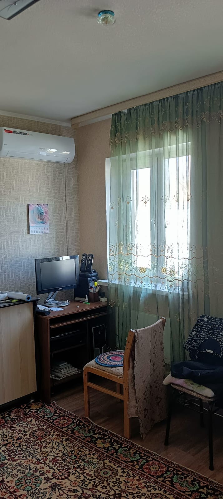 Продаю дом на 26 сотках,всё в собственности.Дом саманный,оштукатурен и утеплён пеноплексом(зимой тепло,летом прохладно).Внутри сделан кап ремонт,потолок 2,6 метра,пол ламинат,стеклопакет.Свободная планировка,новая сплит-система 12шка.Гостиная,кухня,спальня.Санузел с тёплым полом,в доме электроотопление,холодная и горячая вода.Коммуналка не привышает5000 руб. в зимний период .Вся мебель остаётся.К дому пристроен навес 67 кв метров.Есть колодец,вода проведена по всему двору до сада.Два сарая,курятник,телятник,навес под сено,летний душ и туалет.Асфальтированная дорога, остановка, магазин,рядом речка.5-ка,аптека,медпункт,детский сад и школа в 5-ти км.В общем тихое уютное место.Делали для себя,есть вопросы? звоните,пишите,отвечу на все вопросы,дополнительно вышлю фото,видео для вас.