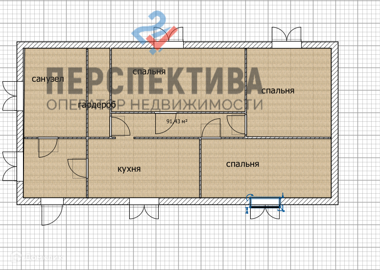 Жилая площадь 60.7 м2
