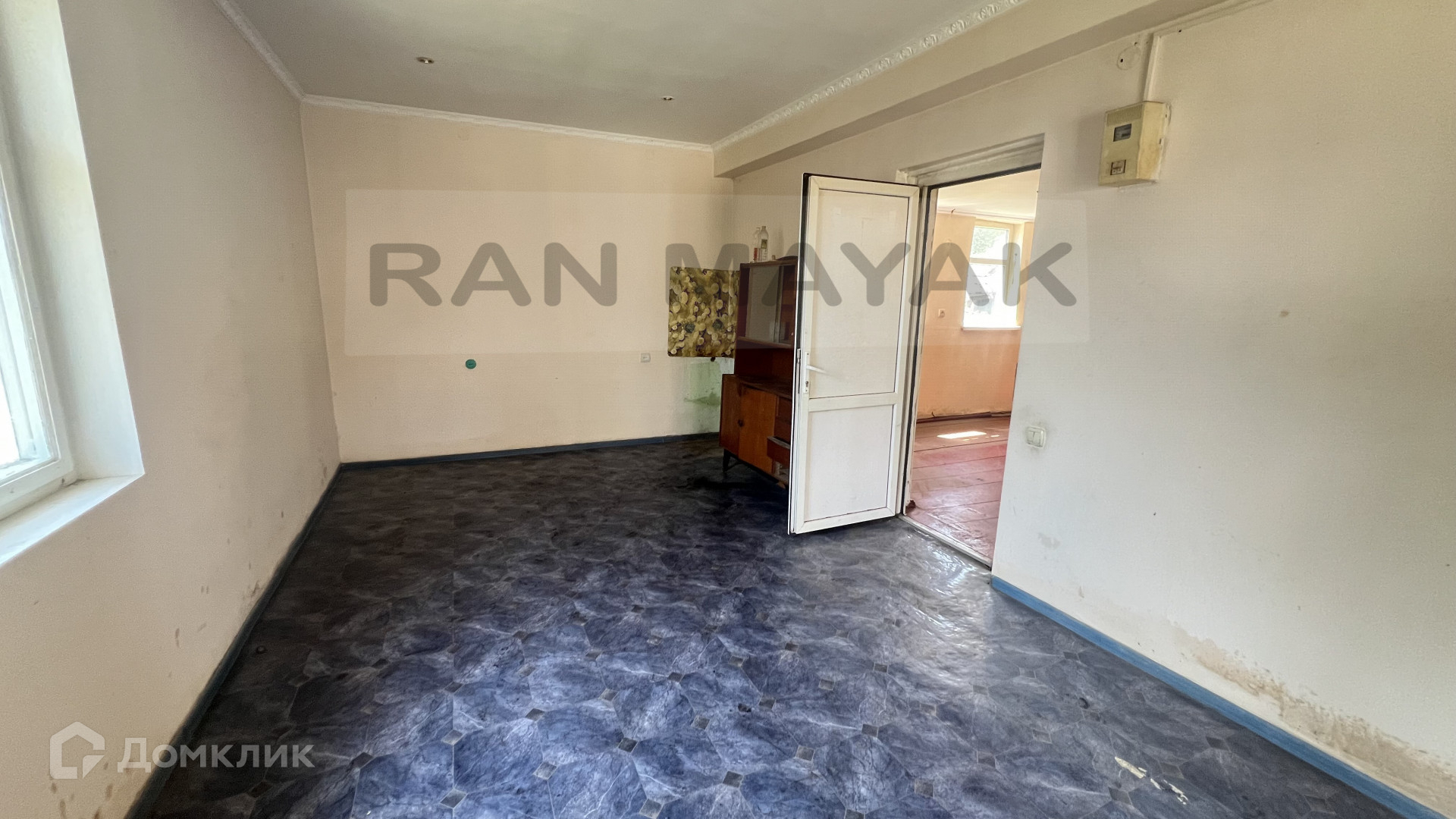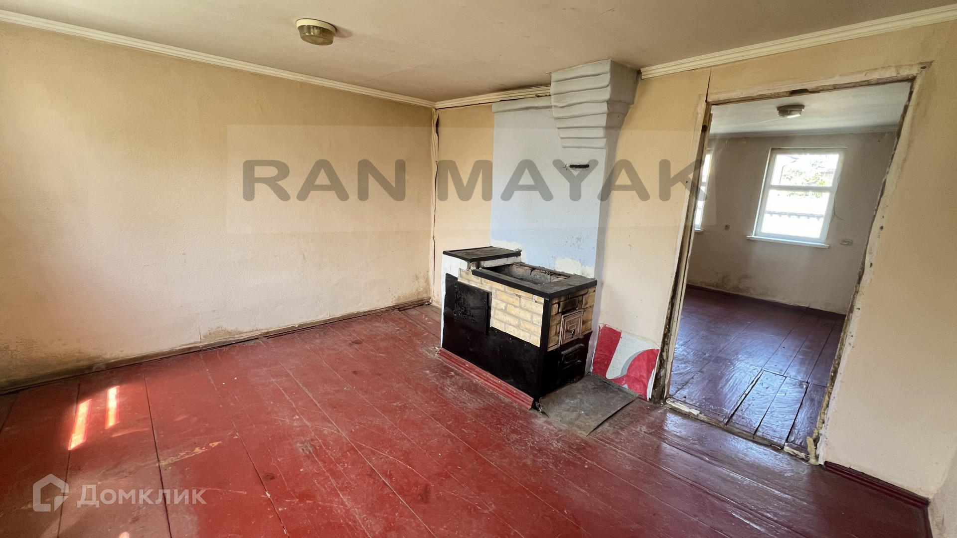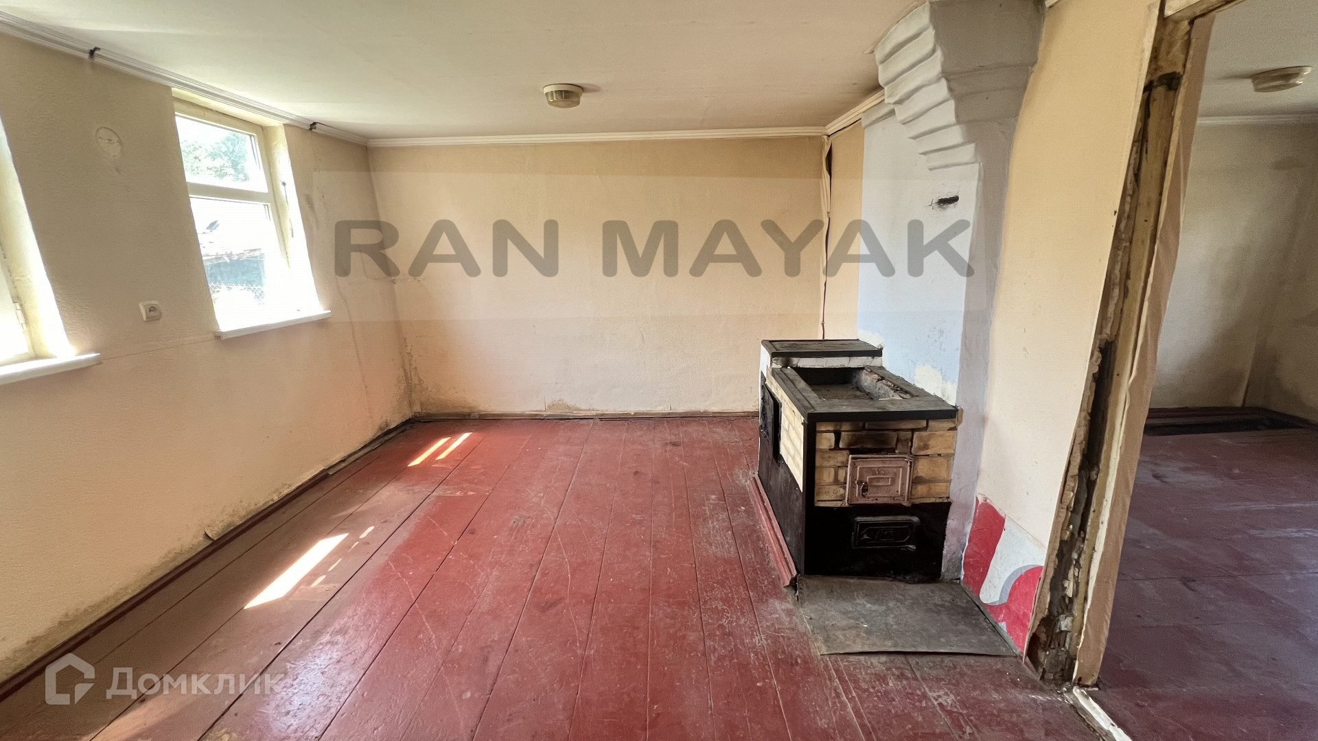 Просторная кухня с печной плитой. Окна пластиковые, пол требует ремонта. Стены ровные нужно только переклеить обои. Потолки гипсокартон.