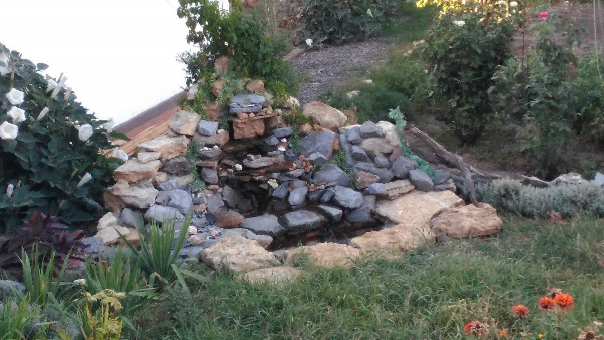 Дождевик, полив (водопровод) с реки, на берегу родник.