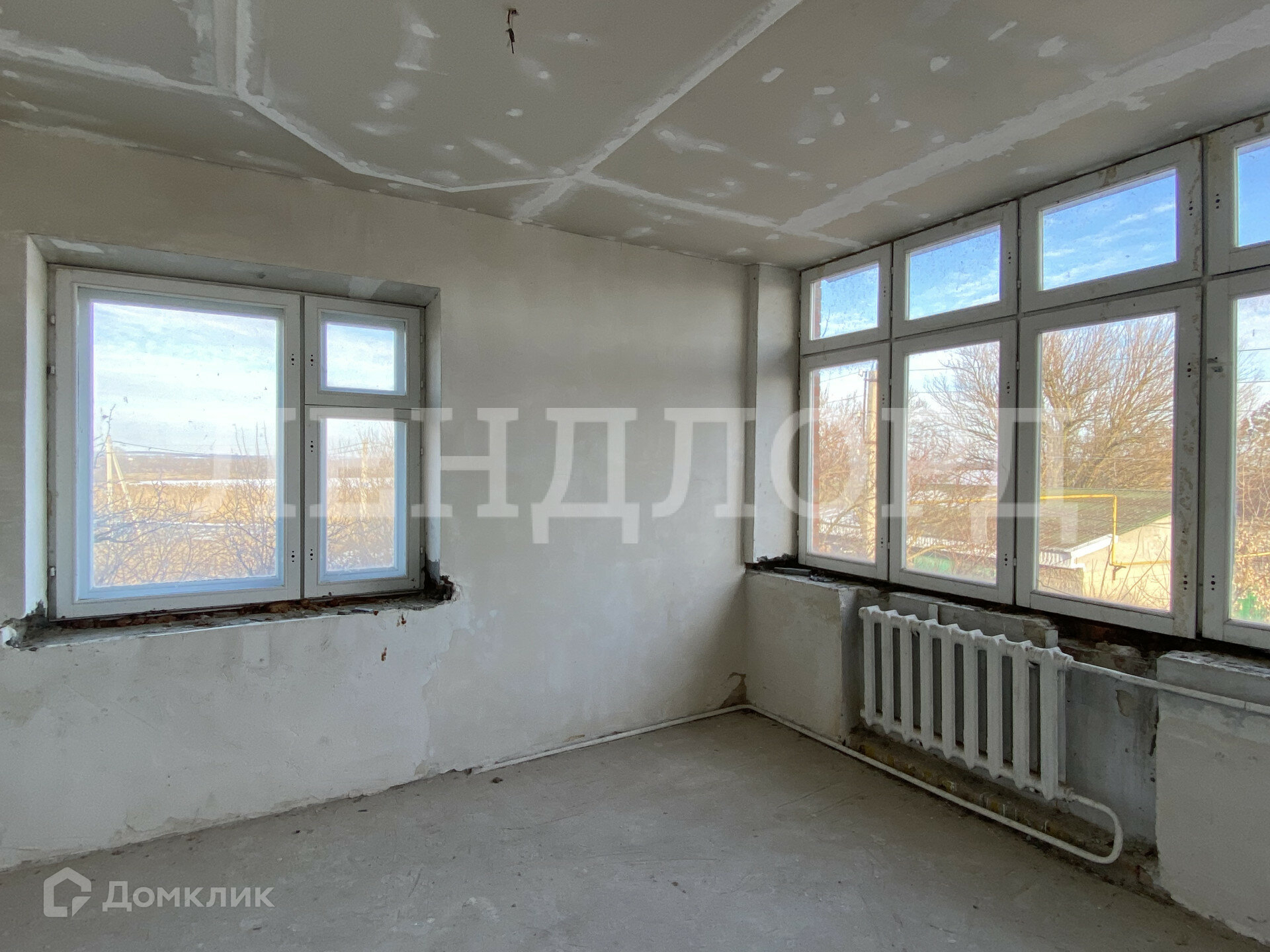 Строй-вариант с пол-стяжкой и высокими потолками (гипсокартон) и деревянными окнами.