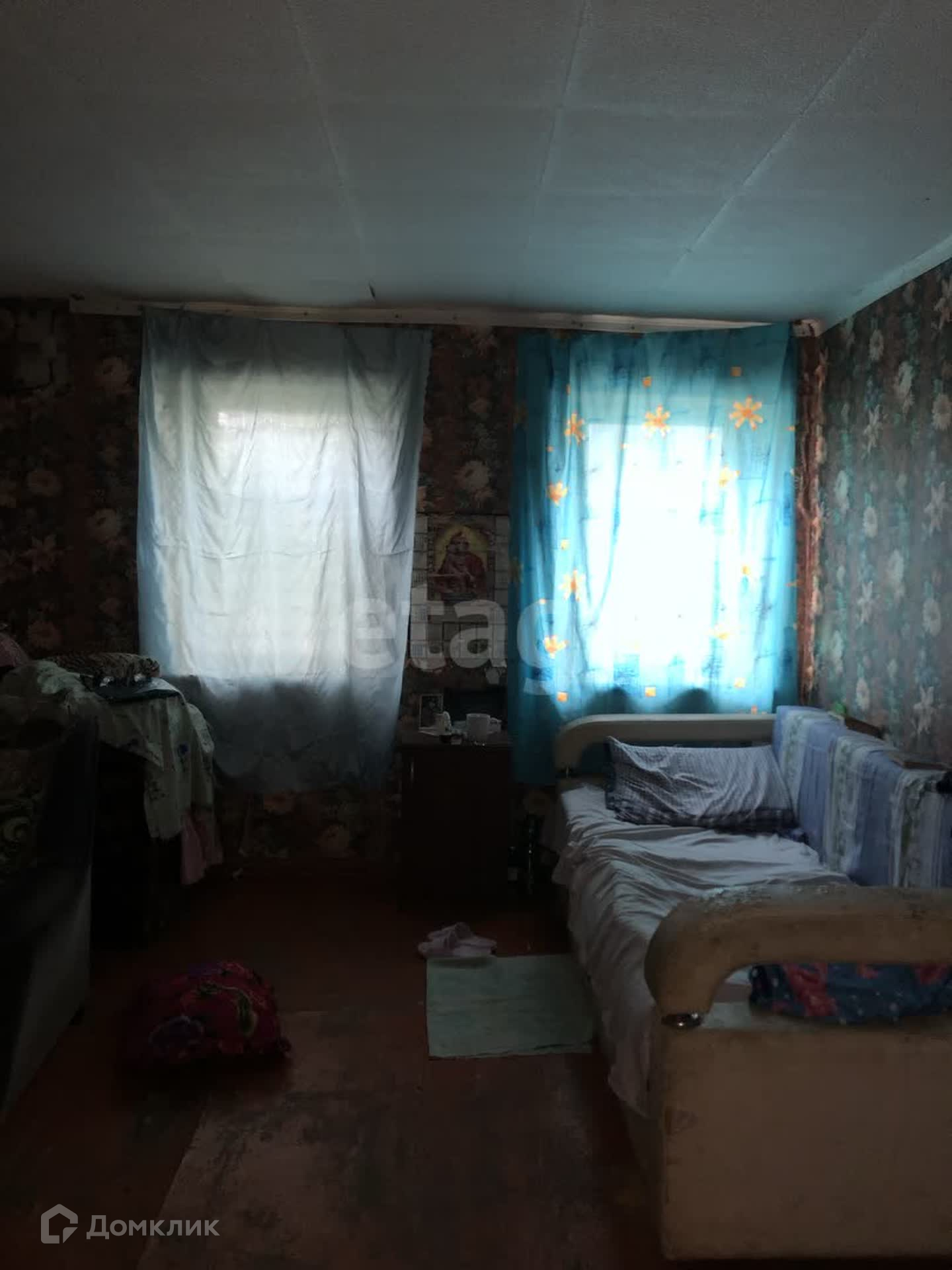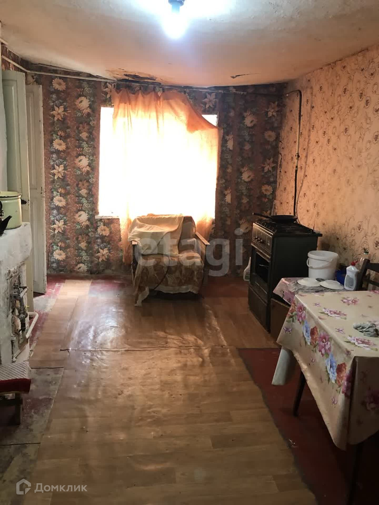В доме три комнаты, есть газ, свет, вода.