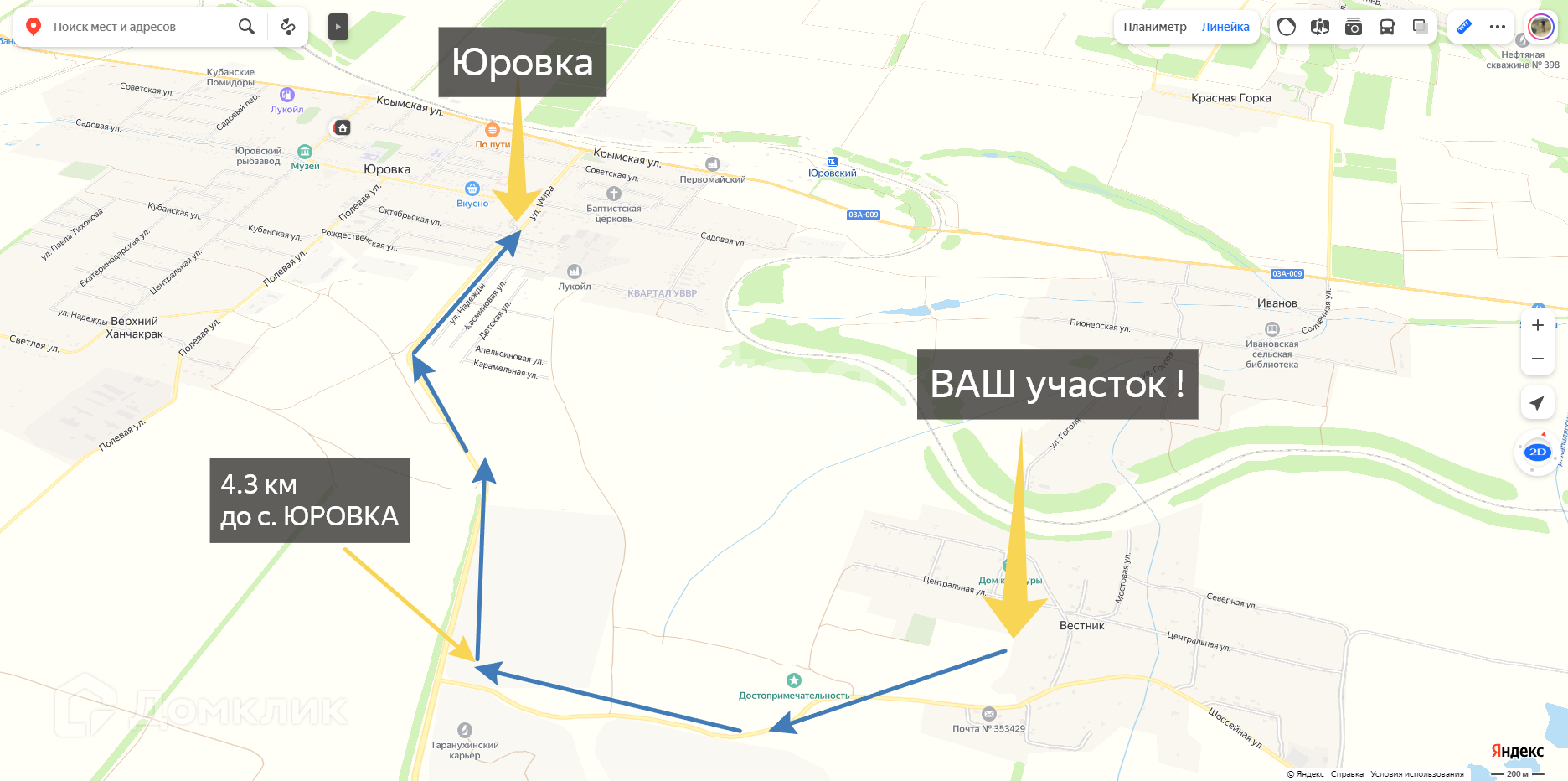 Продаю зем. участок в самом центре х. Вестник. Участок площадью 7.79 соток. Участок со всеми центральными коммуникациями по меже: Газ, свет, центральная вода, интернет. Не подтапливаемый. Назначение ЛПХ (личное подсобное хозяйство ) это как ИЖС но при этом можно держать домашнее хозяйство. Документы готовы к продаже. Выписка ЕГРН , уведомление о получении адреса, Градостроительный план. 1 собственник. х. Вестник находится в 4.3 км от Юровки. В хуторе есть магазины, фельдшерский пункт, дет. сад, ходит школьный автобус из Юровки. Вестник расположен между с. Юровкой и ст. Гостагаевской, в 35км от Анапы и от моря. Звоните!