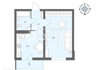 Продажа однокомнатной квартиры, 38.3 м2, Выборская улица, 12