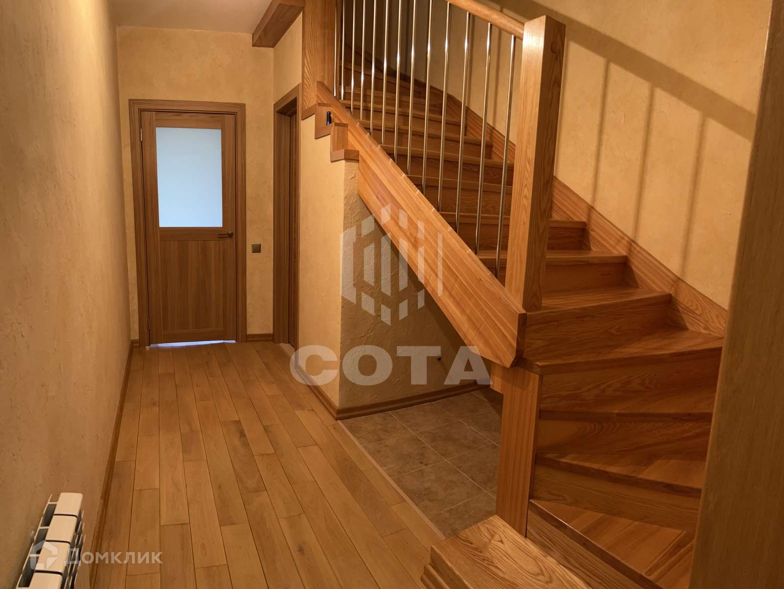 Отделка 100%, стеклопакеты, массивная доска на полах, стены в санузлах облицованы плиткой, качественная сантехника (Villeroy), смесители, лестница из массива лиственницы и двери в идеальном состоянии.