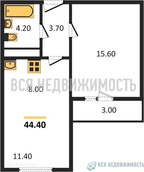 Общая площадь 44.4 м2