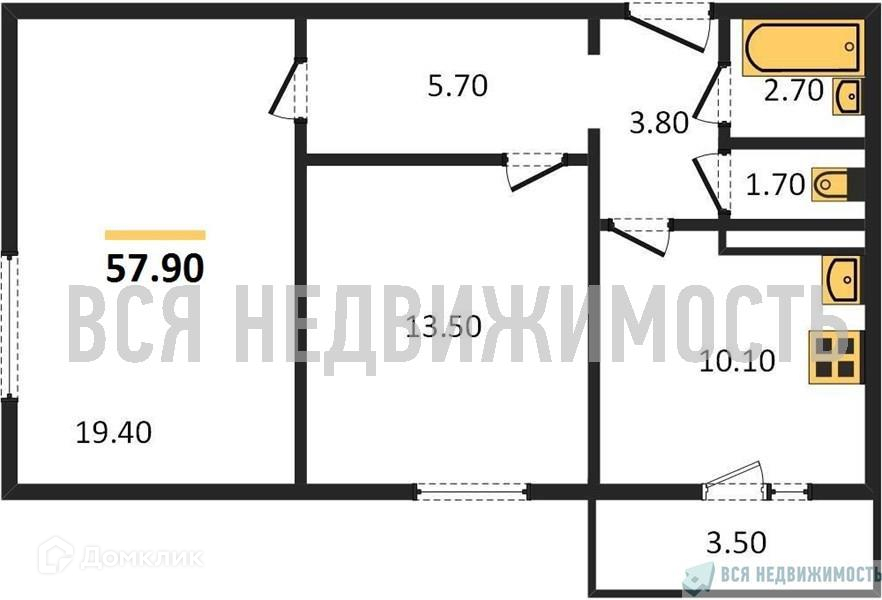 Общая площадь 57.9 м2