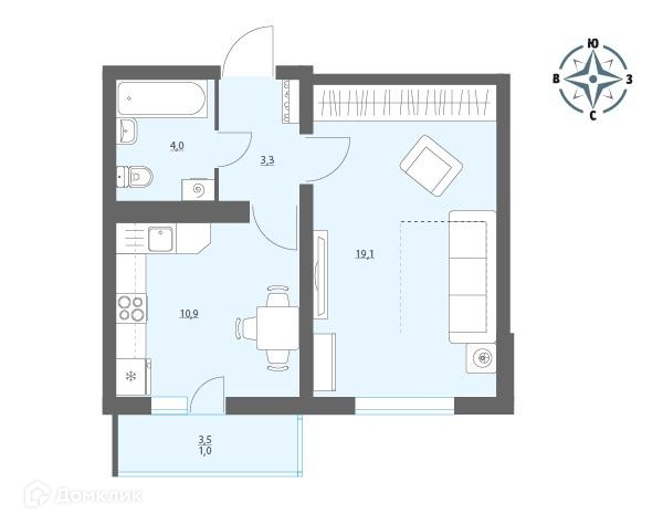 Общая площадь 38.3 м2