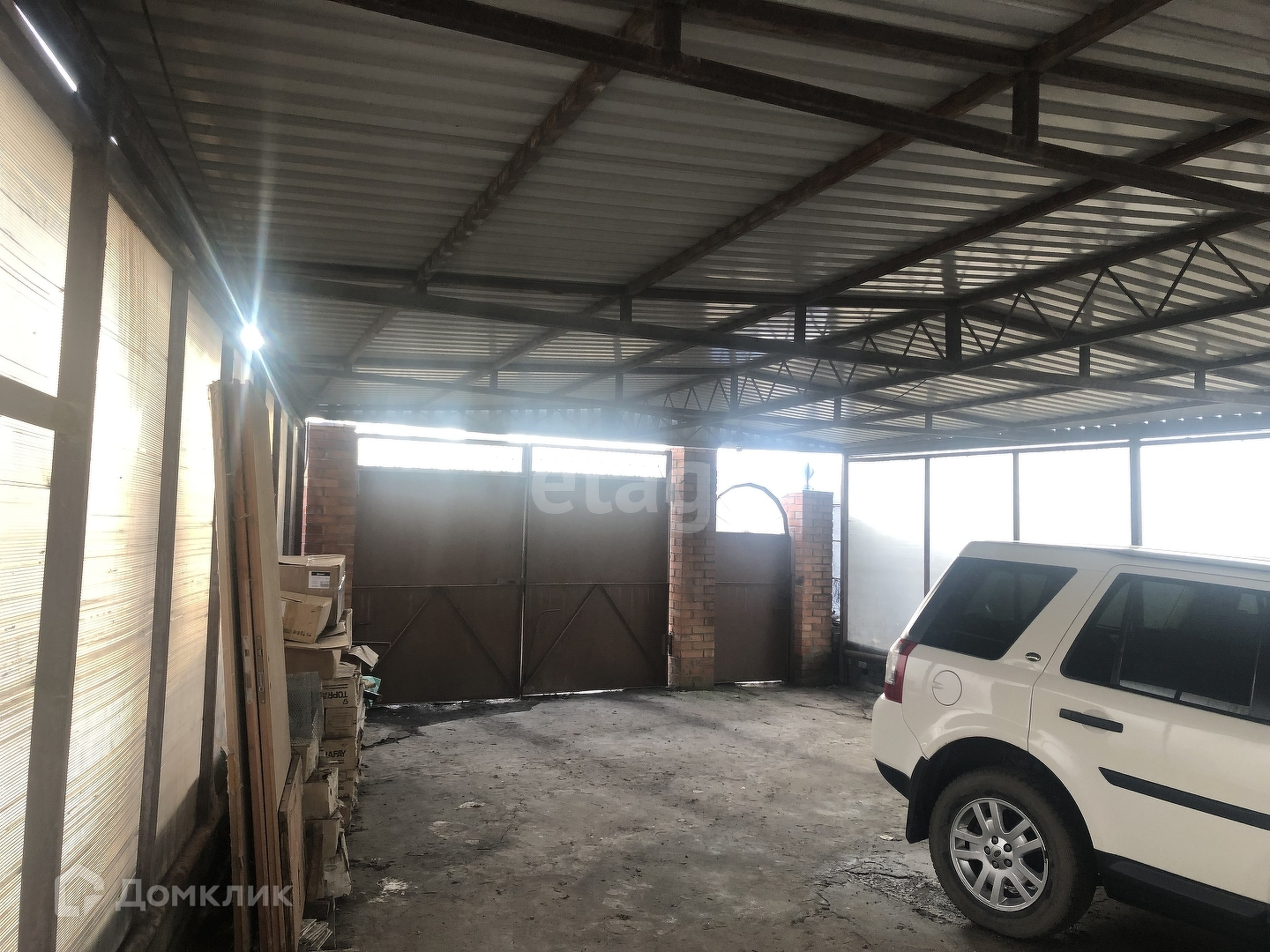 Во дворе есть навес на 4 авто.