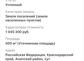 Участок ИЖС; 5,6 сот. фасад 17,5 м, глубина 30м. Подведено электричество 15кВт. ГАЗ на меже. Вода -необходимо бурение скважины. 2,5 км от песчаных пляжей Чёрного моря, в 8 км от Анапы, в 3 км от ж/д вокзала, в 6 км от аэропорта Анапы, с западной стороны хутора проходит трасса А-290 Новороссийск-Керчь. Населенный пункт удачно расположен для туристическог... |