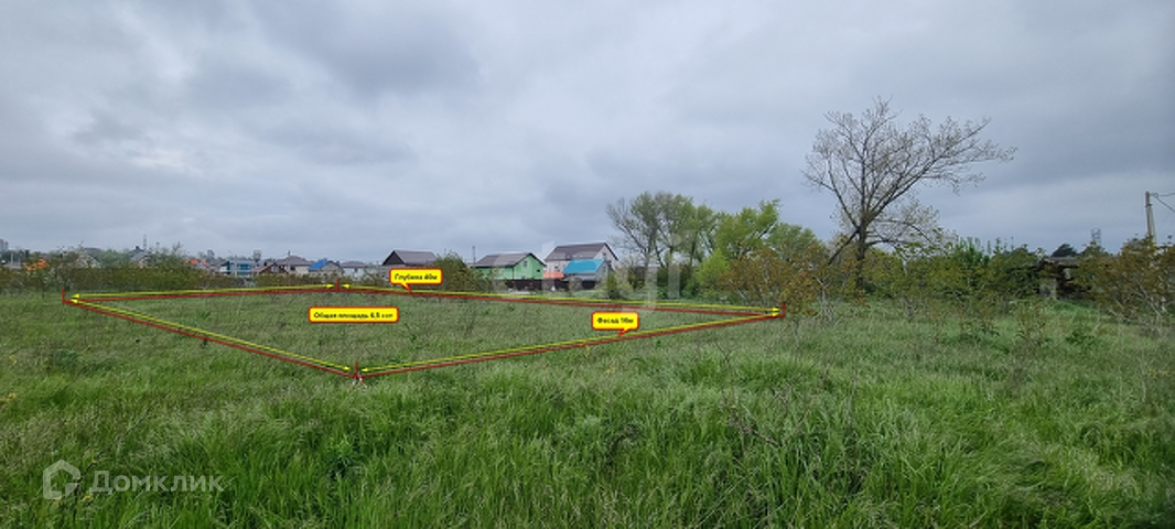 Общая площадь участка 6,5 сот, фасад 16,2 м, глубина 40,1 м.