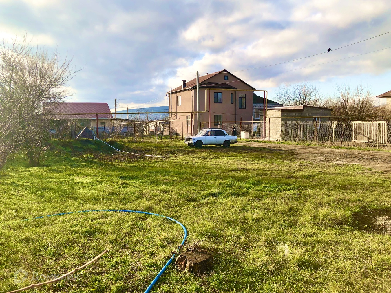 Коммуникации проходят прямо по меже , газ, свет и центральная вода .