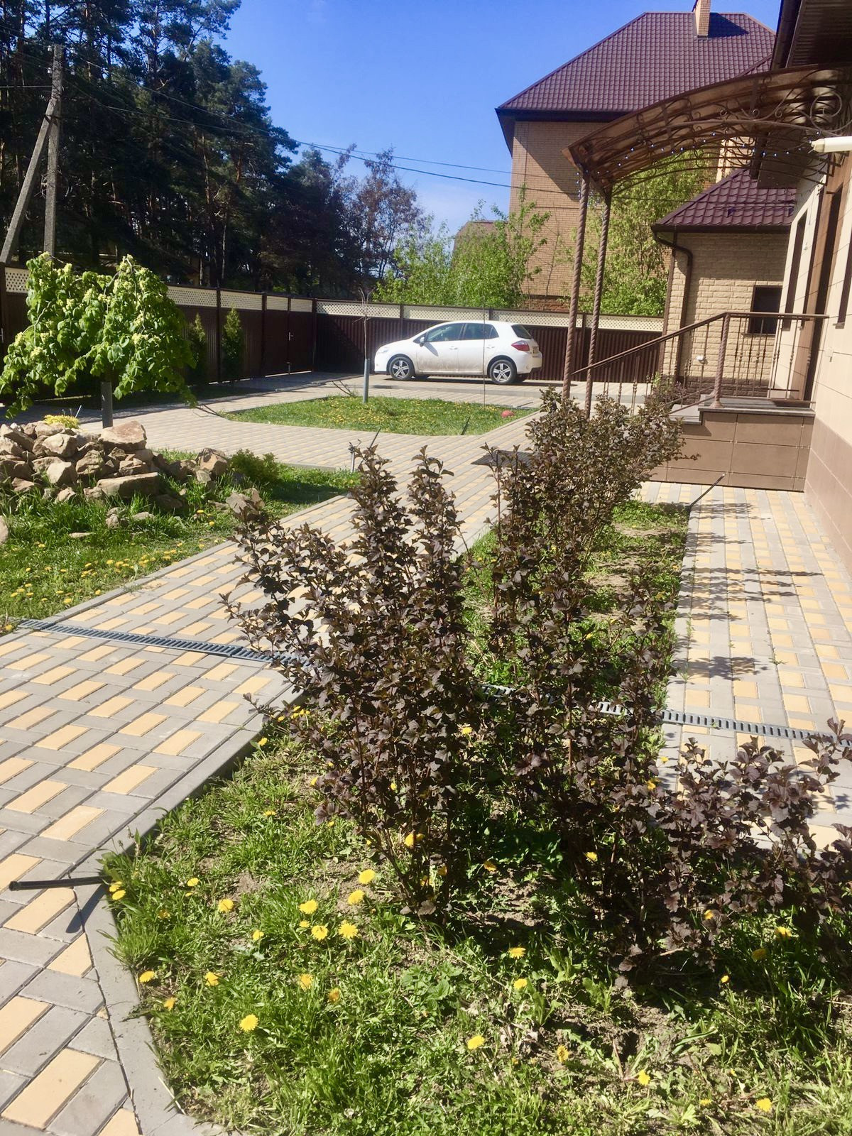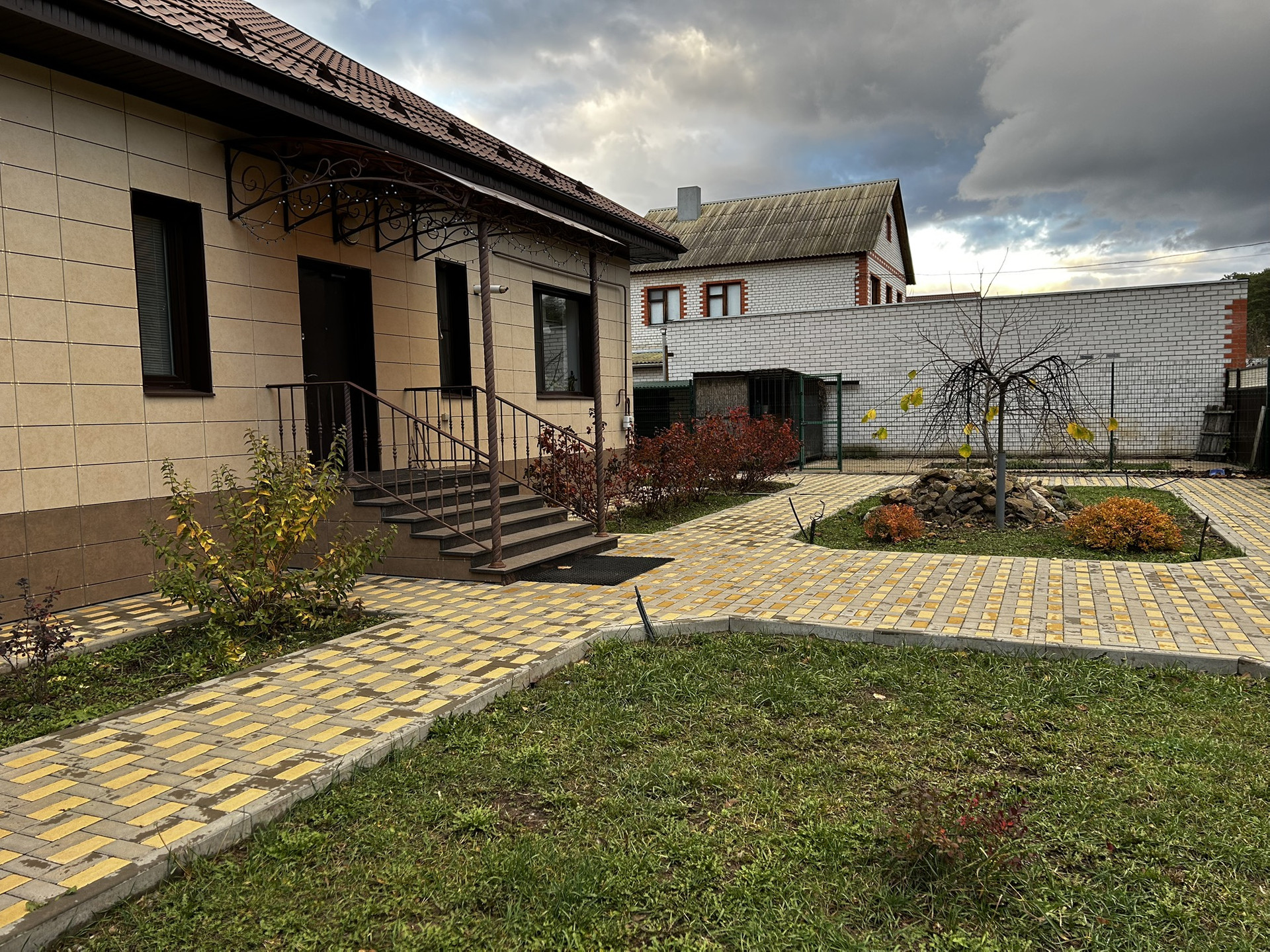 Благоустройство участка: уложено более 500 кв.м. тротуарной плитки ("Зенит-Черноземье" толщина 4-6 см.), созданы тротуары, площадки для парковки 4 автомобилей, завезен чернозем на клумбы и в огород, подведены системы освещения и водоснабжения.