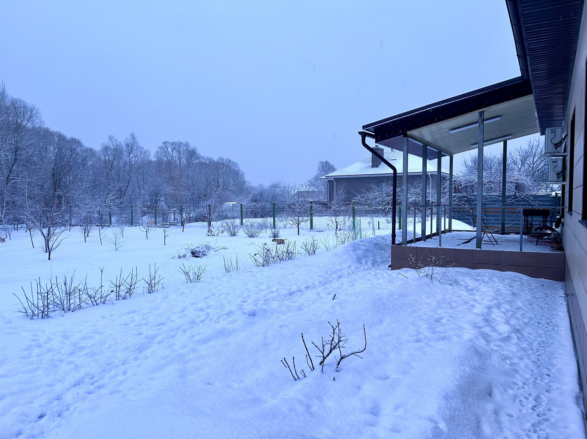 крыльцо - гранитные ступени, навес - ковка.