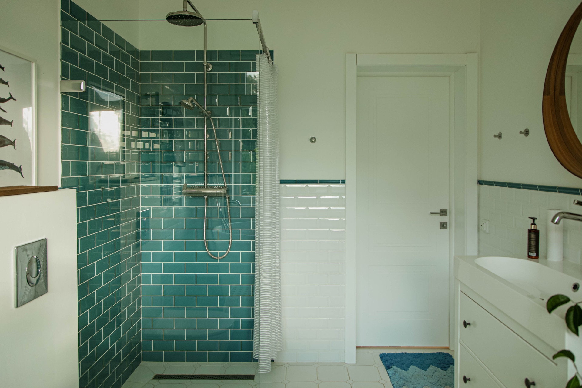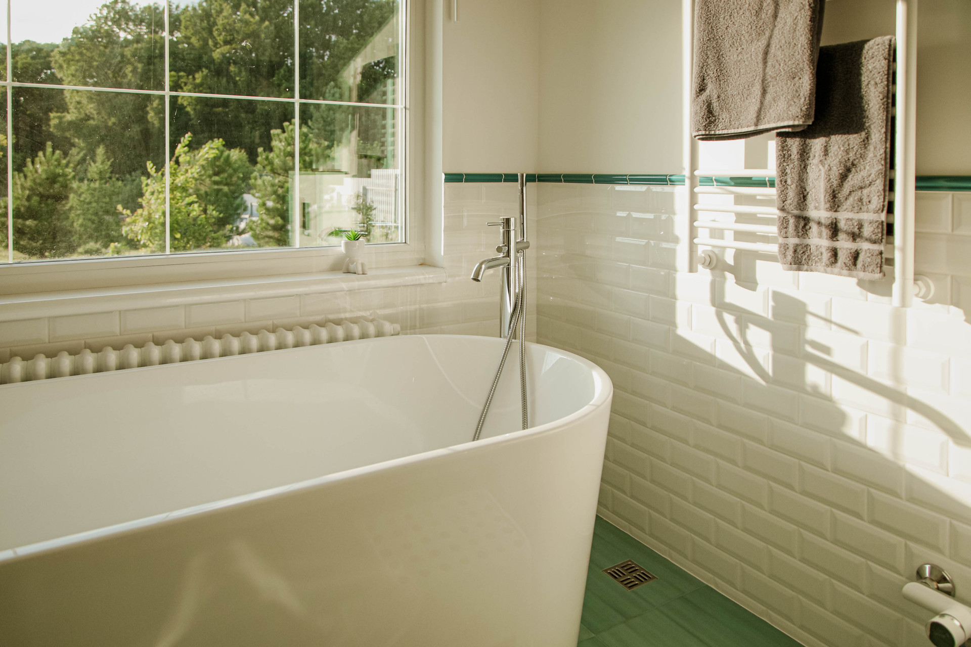 Ванная комната с видом на сад — место для очищения тела и мыслей. Камин и большой 4К телевизор - идеальное место для уютных семейных вечеров.