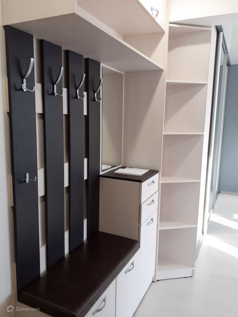 В квартире остаётся кухня, холодильник, духовой шкаф, прихожая, шкаф купе.