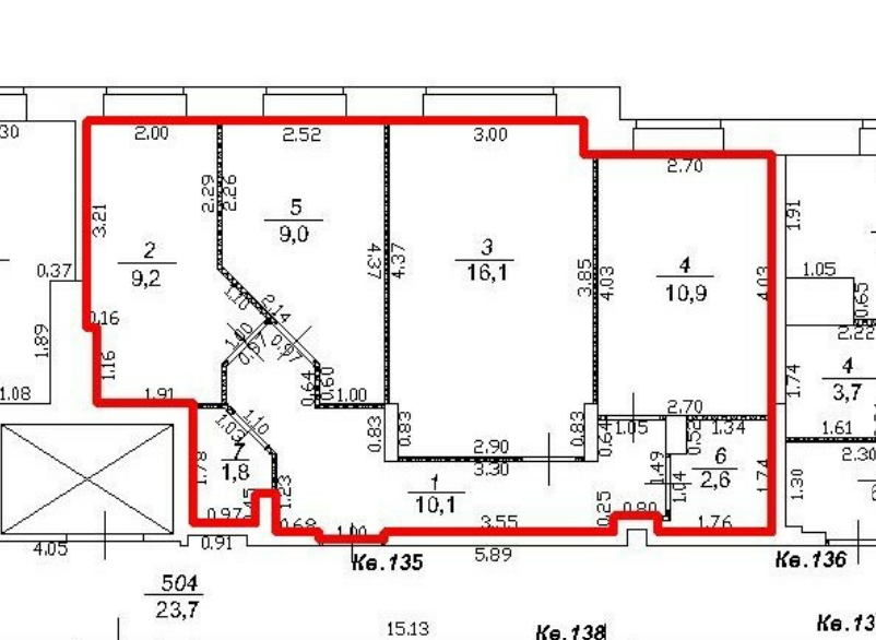 Жилая площадь 36.2 м2