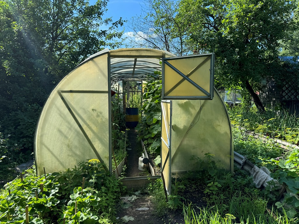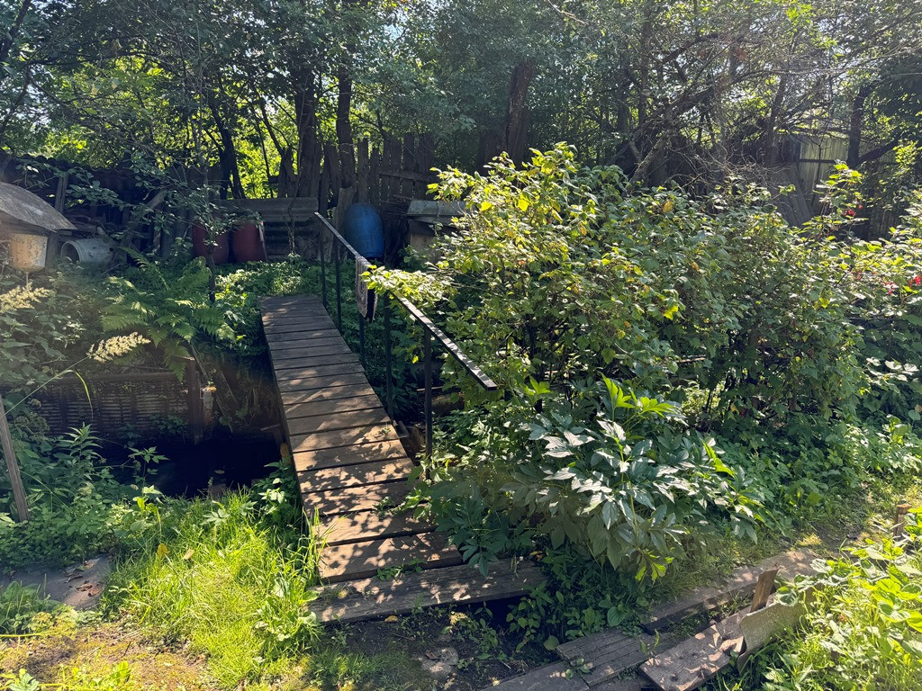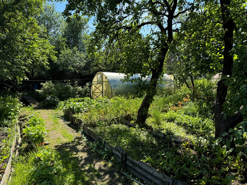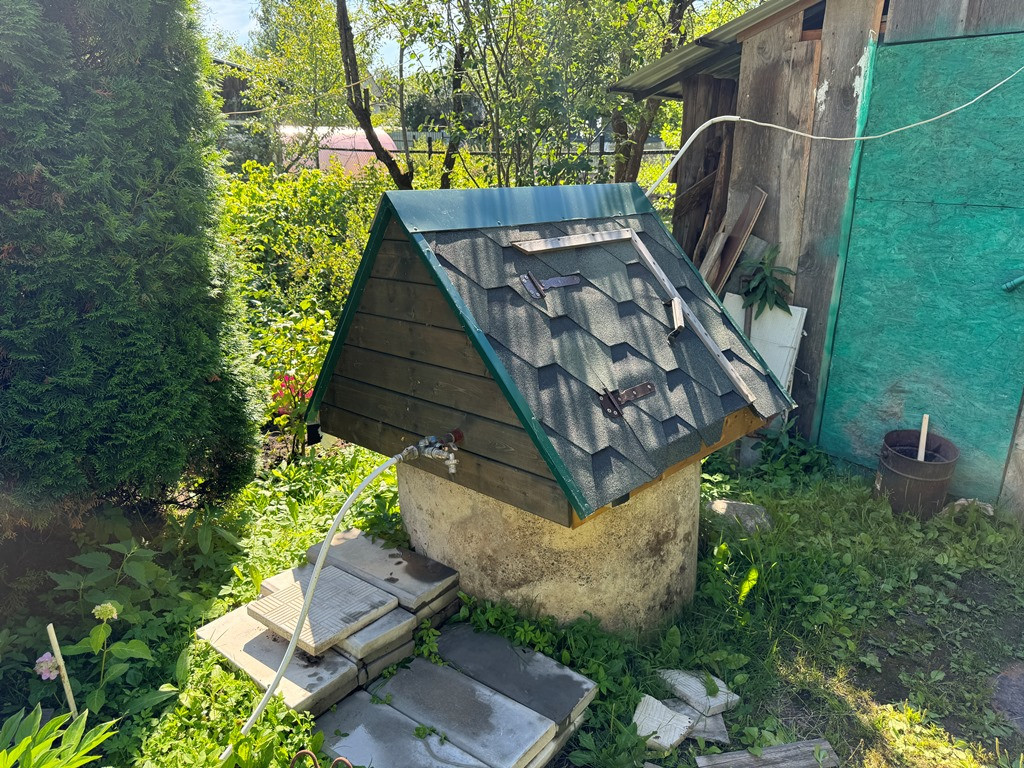 На участке хороший сад, беседка, небольшая баня, теплица, колодец.