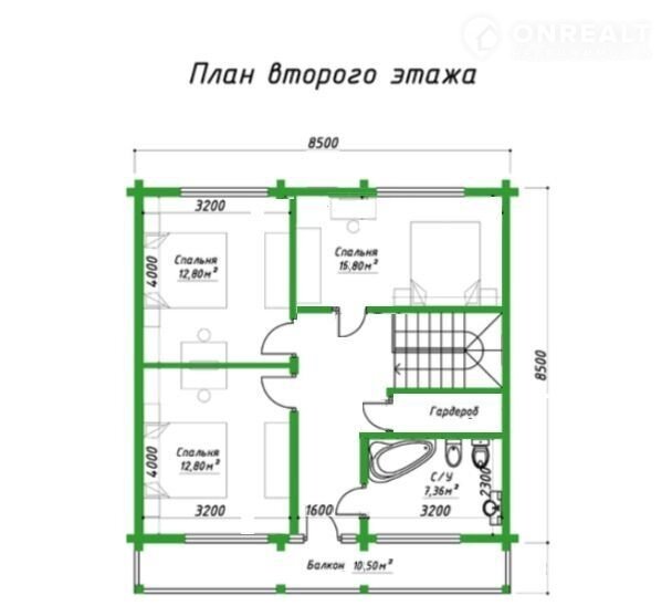 на 2-м этаже по проекту три жилые комнаты, гардеробная, ванная, туалет и открытый балкон 10м2, потолки 2,9 м.