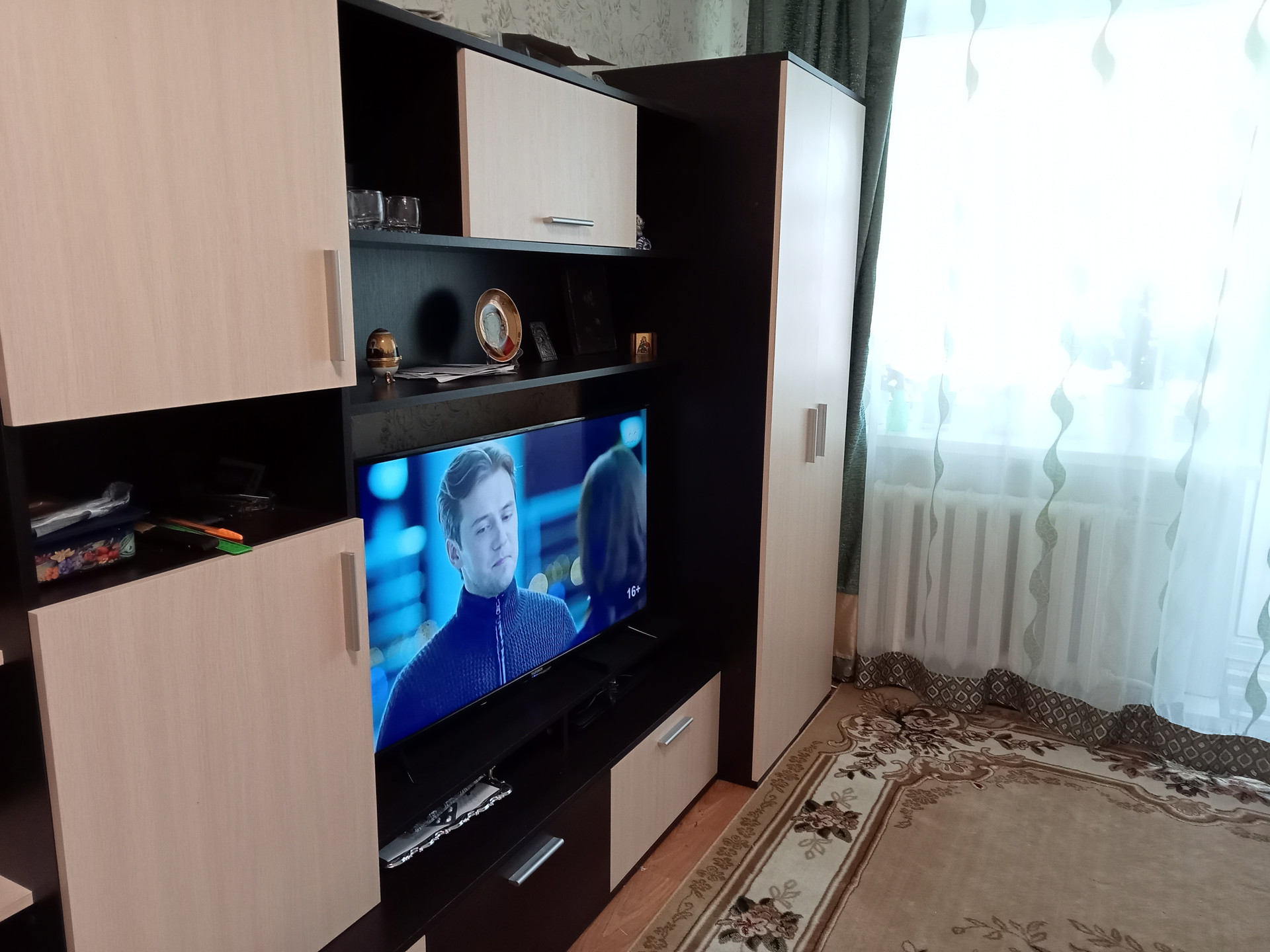 1-комнатная квартира. Свежий косметический ремонт, пол ламинат, натяжные потолки, окна пластиковые, балкон застеклён. Остаётся кухня, возможно мебель.