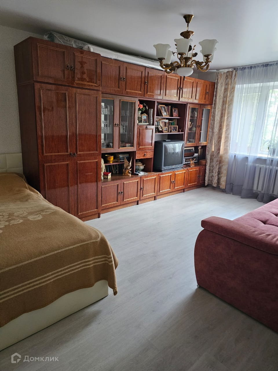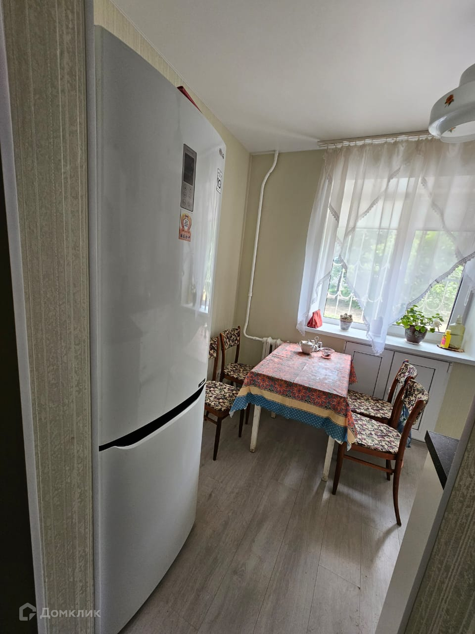 На полу ламинат, балконов - нет, лоджий - нет, окна выходят во двор.