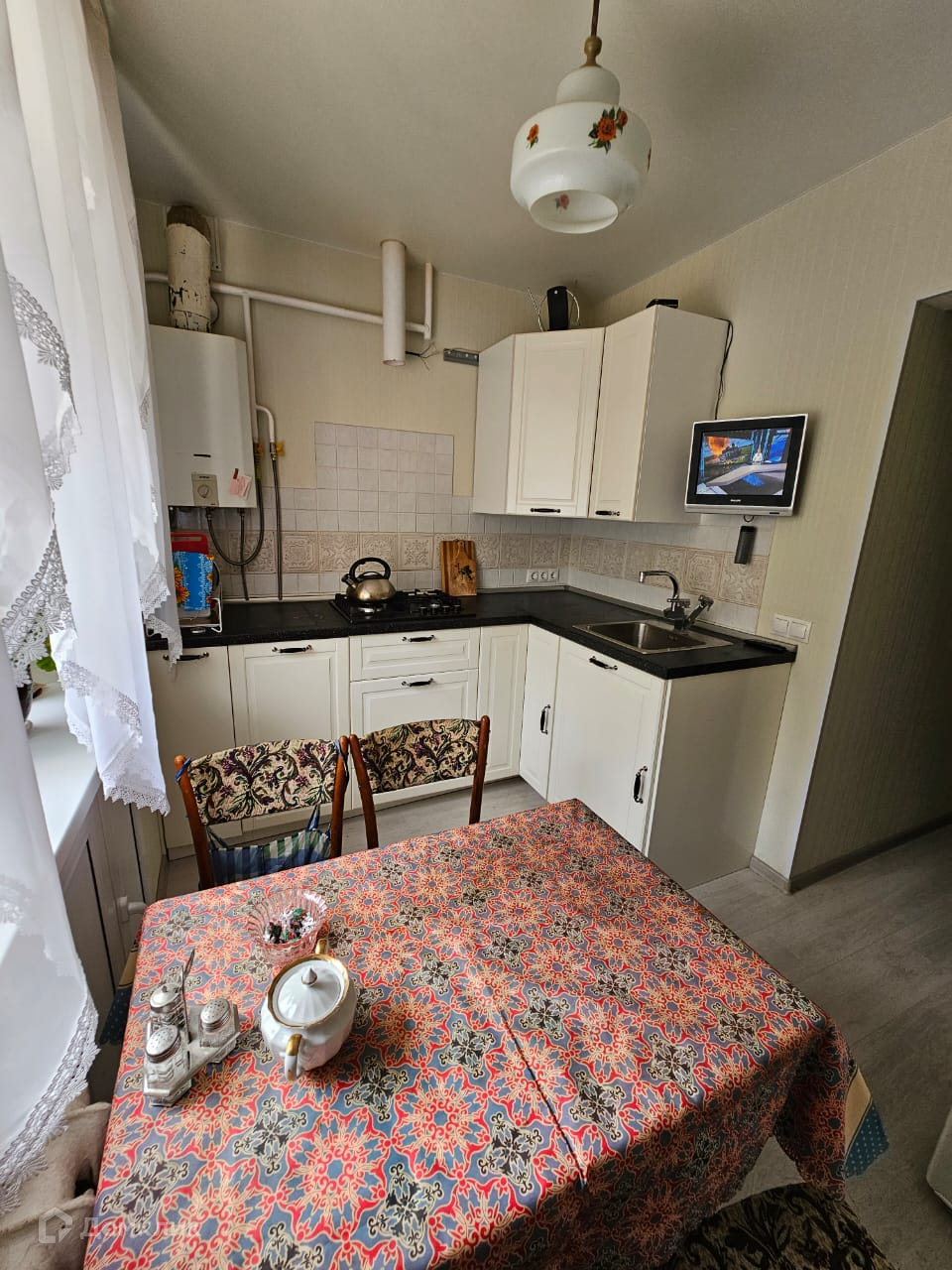 Квартира располагается на 1 этаже 5-этажного кирпичного дома 1966 года постройки, высота потолков 2.7 м, в доме газ. Инфраструктура: школа, детский сад, детские площадки, места для отдыха.