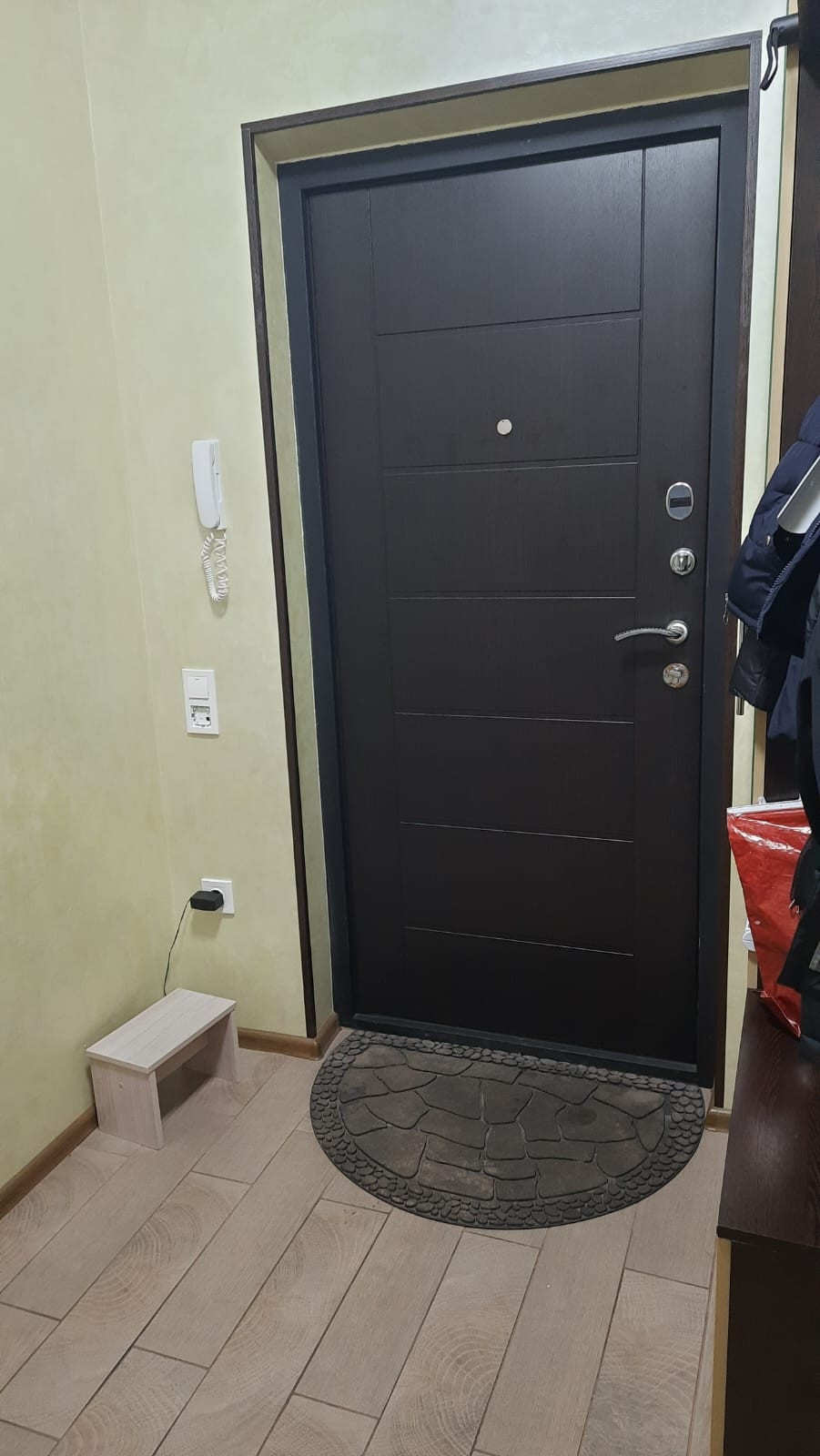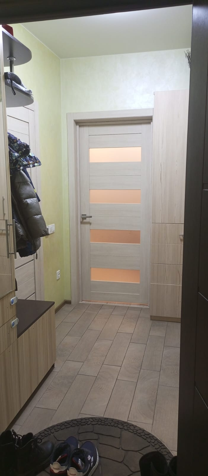 В квартире сделан качественный ремонт, в ванной и коридоре тёплый пол, качественная электропроводка, на кухне и коридоре стены выполнены с эффектом "мокрый шёлк".