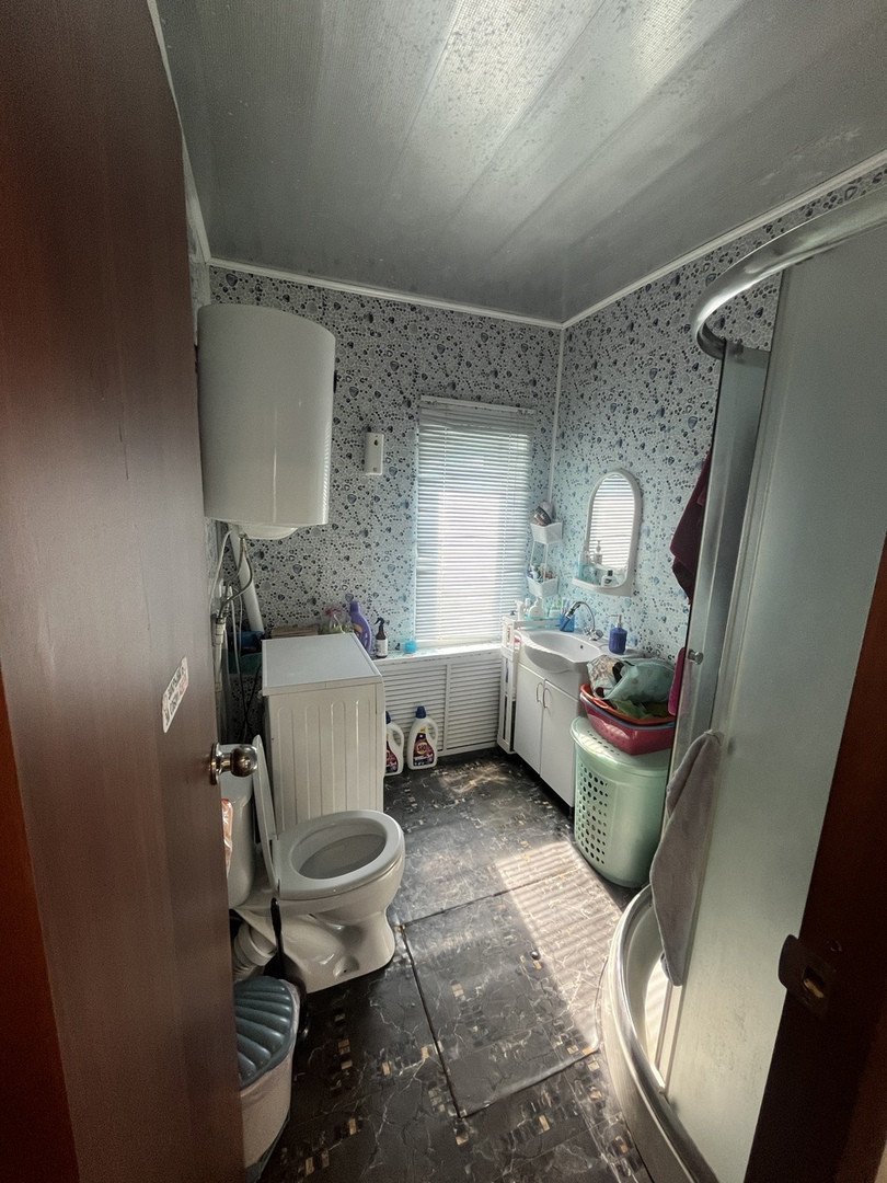 Бревенчатый добротный дом, с хорошей планировкой. Со всеми необходимыми коммуникациями. С/у и душевая кабина в доме. Косметический ремонт в доме, натяжные потолки, современный ремонт, встроенная кухня. Баня на территории участка, беседка, мангальная зона.