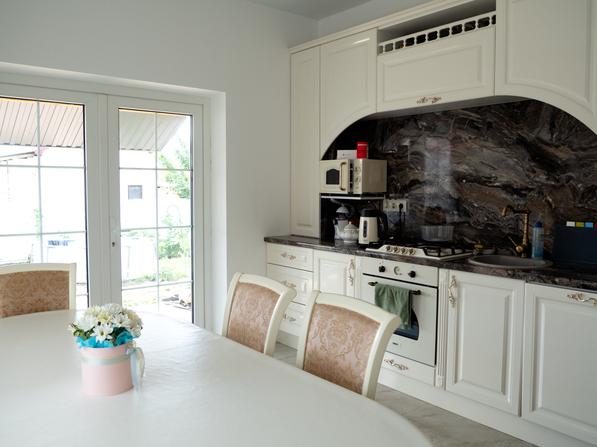 На кухне и в прачечной есть два дополнительных выхода во двор. Их размещение продумано, поэтому от дверей не веет холодом даже в морозы зимой.