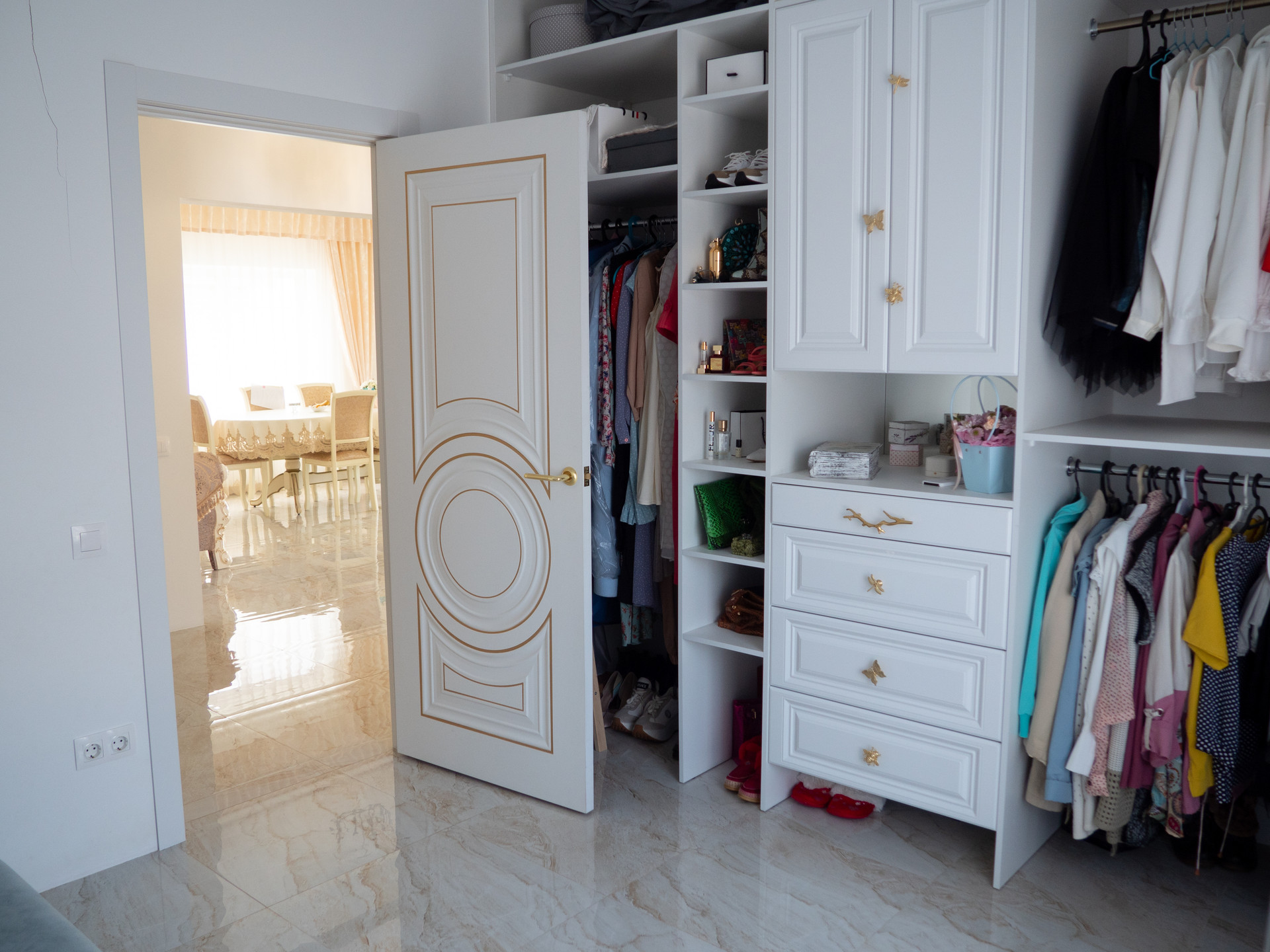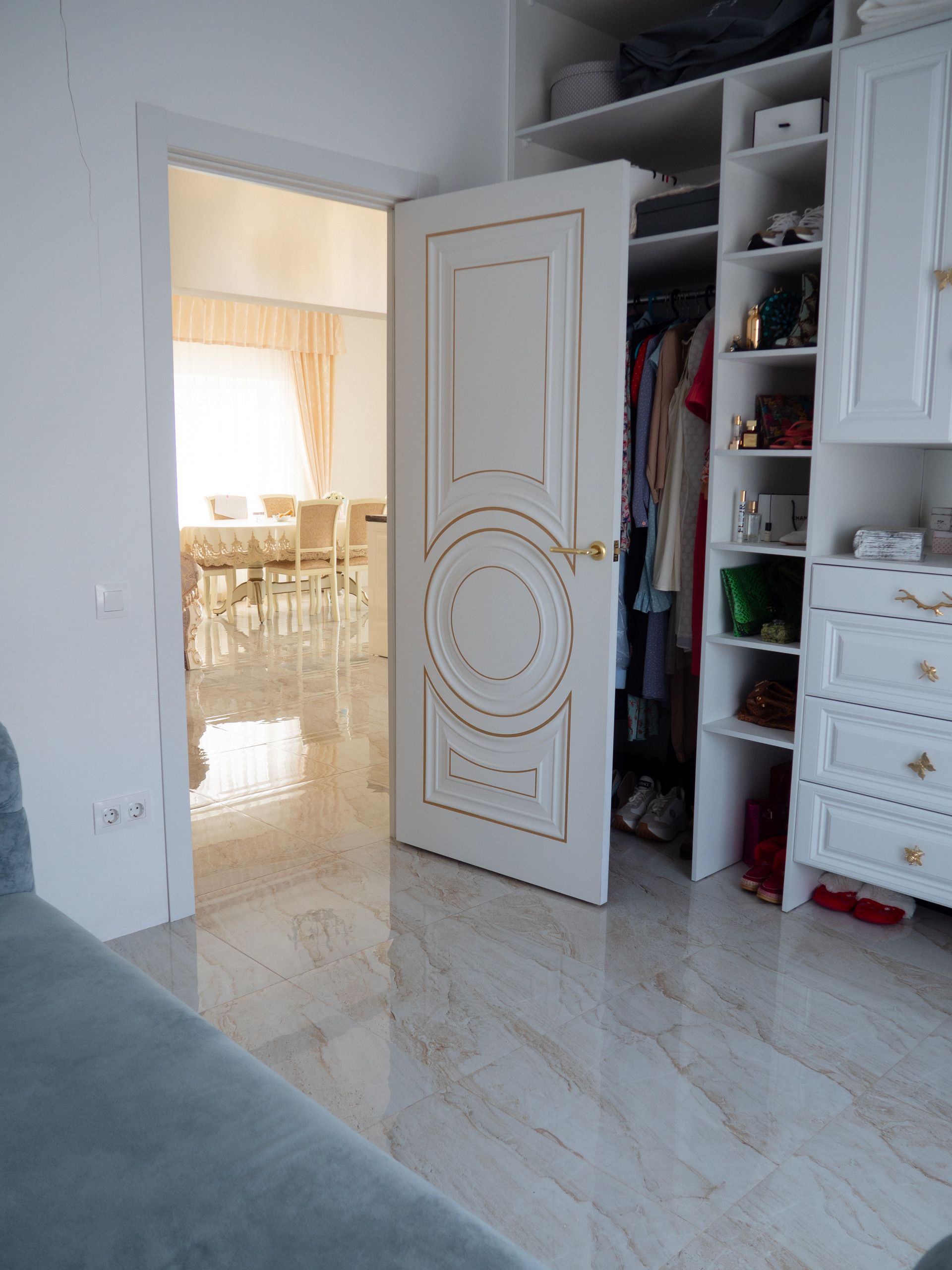 По всему дому розетки расположены в самых удобных местах, продумана розетка даже для новогодней елки с гирляндой.