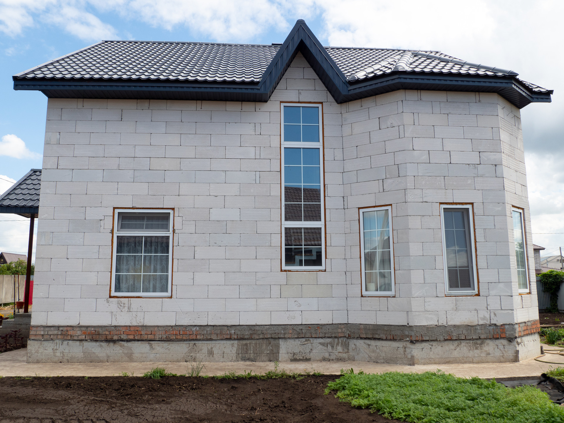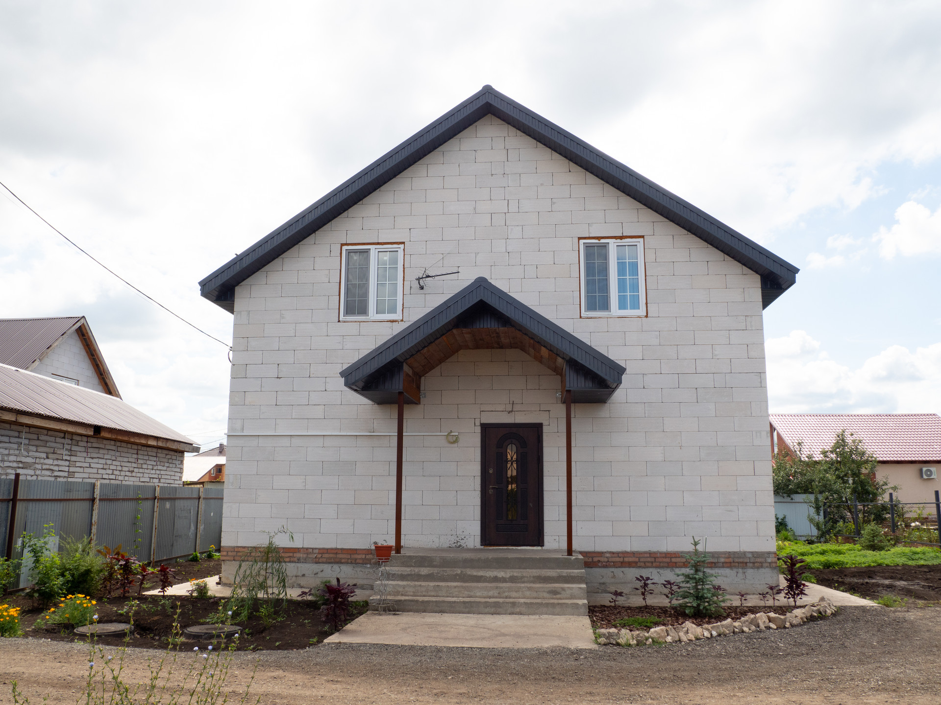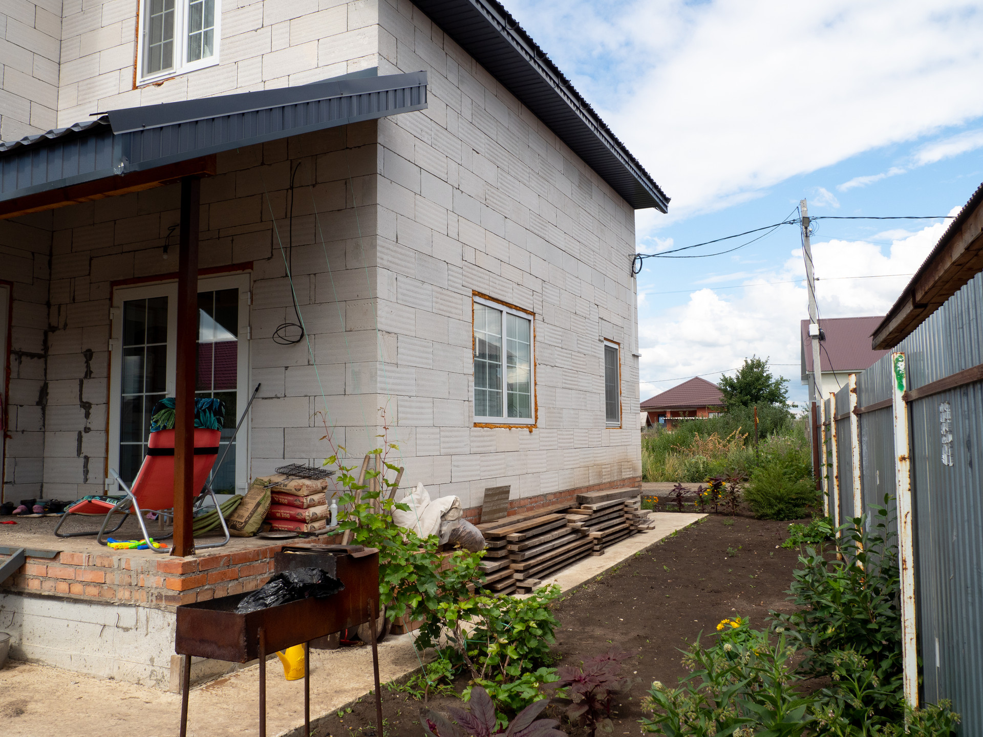 Дом из пеноблоков, площадью 180 кв.м., стены и крыша дома утеплены. На крыше установлена антимоскитная сетка.
