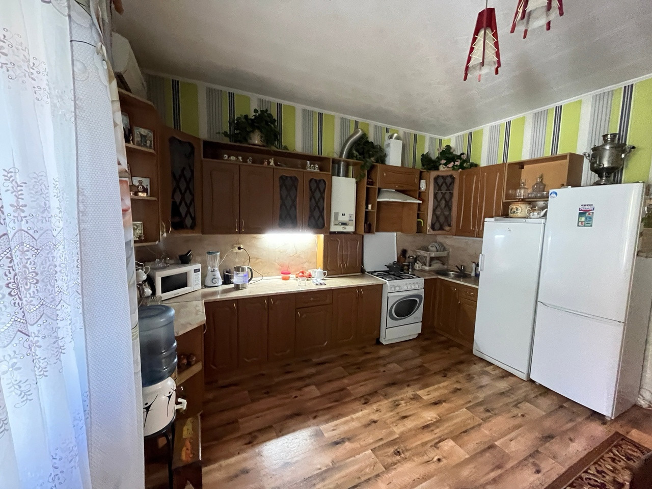 В шикарном месте, отличный дом, рядом озеро,школа, детский сад, различные магазины и косметические услуги, автобусная остановка. Асфальтированные подъездные пути. С большим земельным участком, к которому можно подъехать с двух сторон, огромный потенциал для Бизнес идей. А так же размежевать и построить еще один дом. Есть гараж, баня, теплицы, столярная мастерская со своим погребом, различные плодово ягодные деревья, кустарники, цветы. Все удобства в доме, высокие потолки. Встроенная кухня останется новому владельцу, по договоренности остальная мебель.