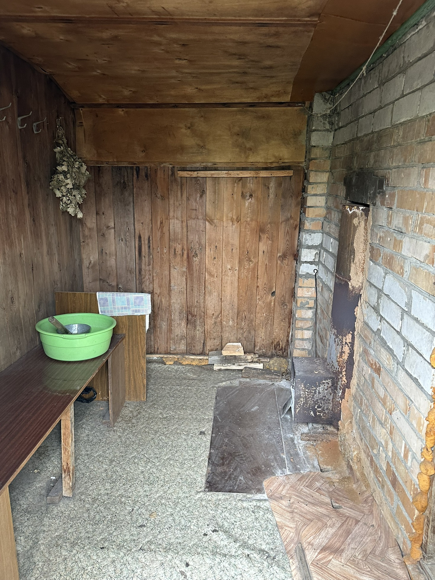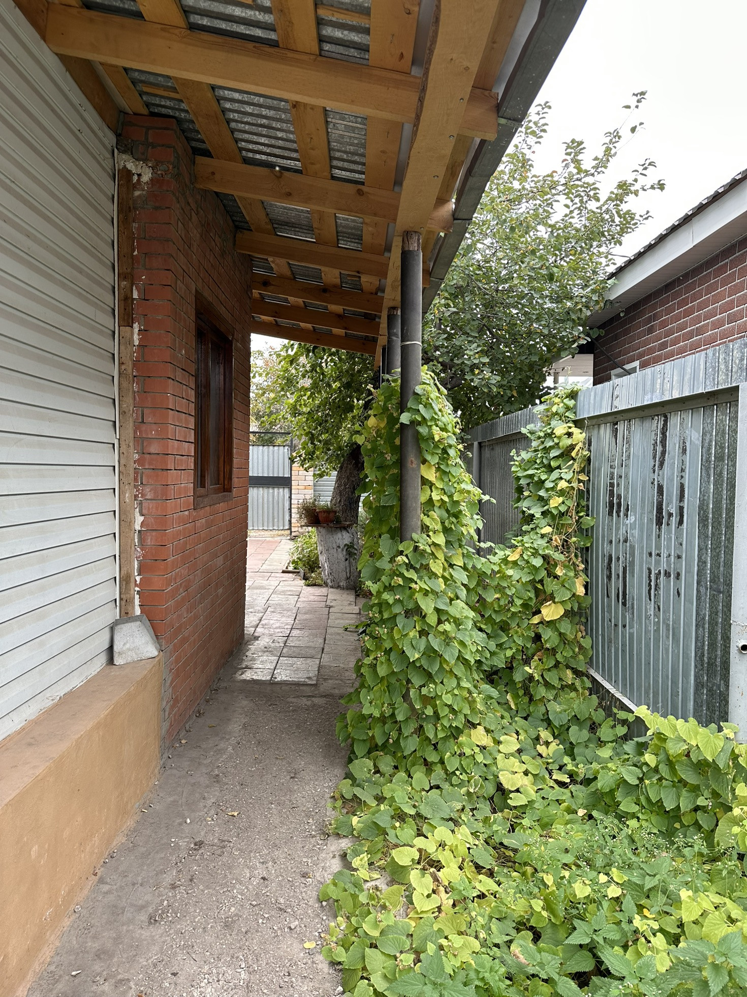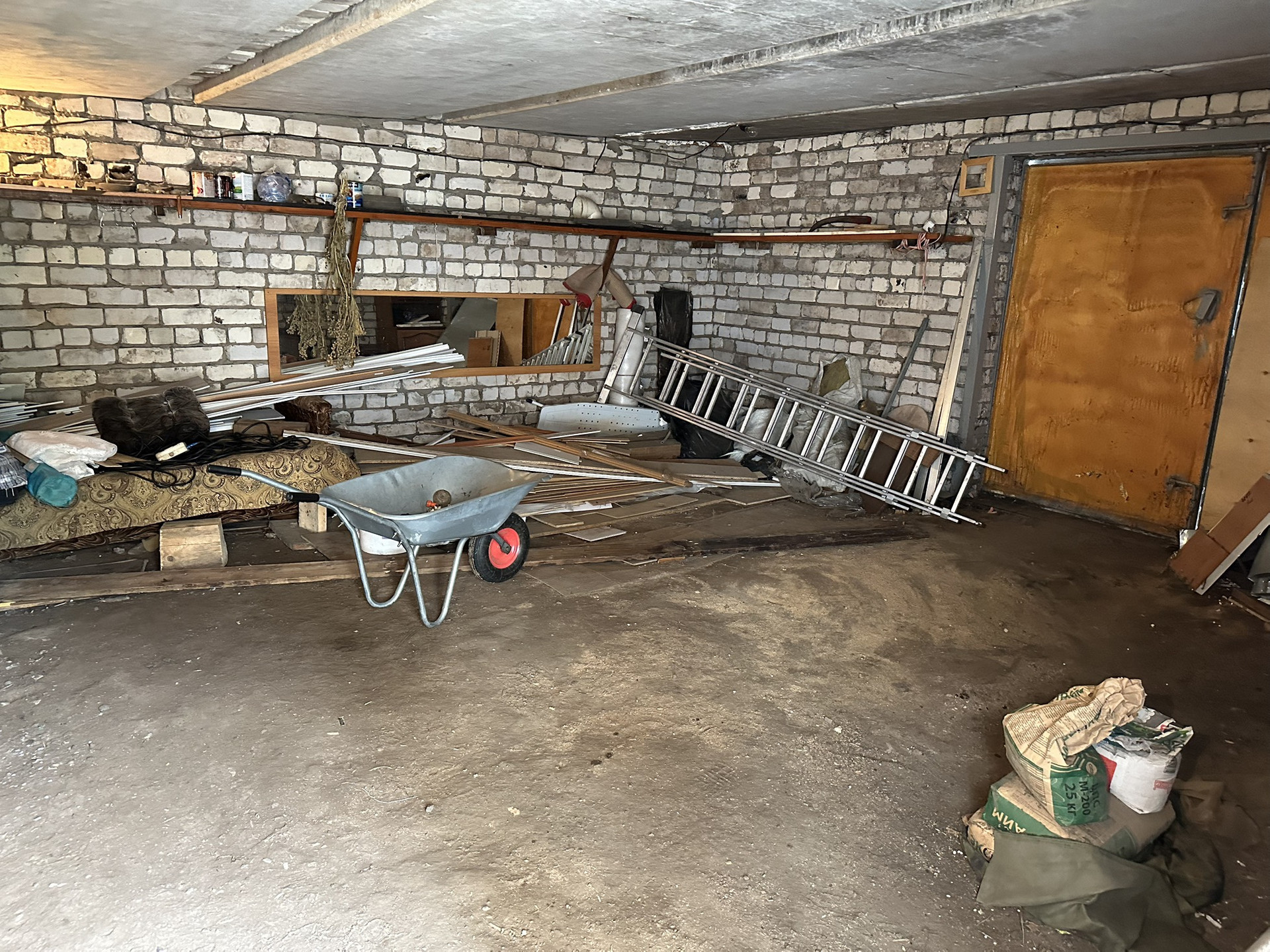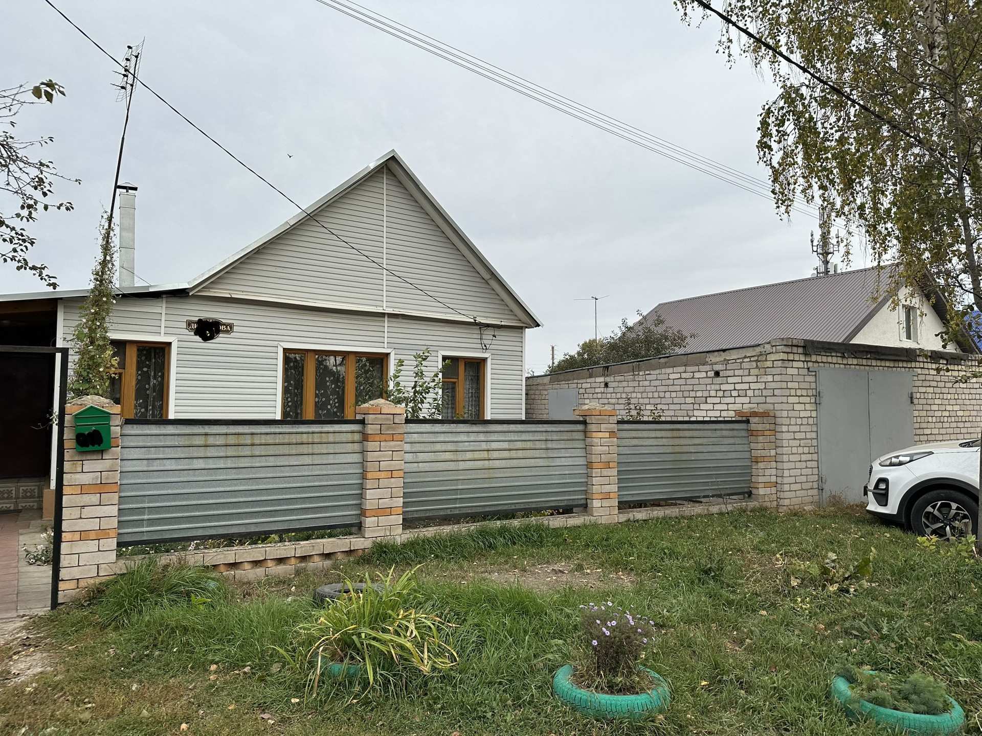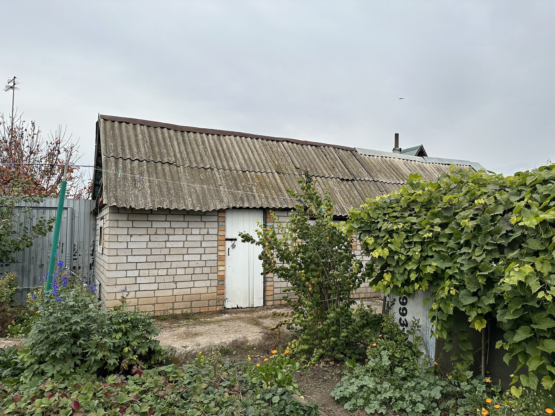 Во дворе есть баня (требуется ремонт), сарай, уличный туалет, две кладовки, полноценный кирпичный гараж 40 кВ.м.