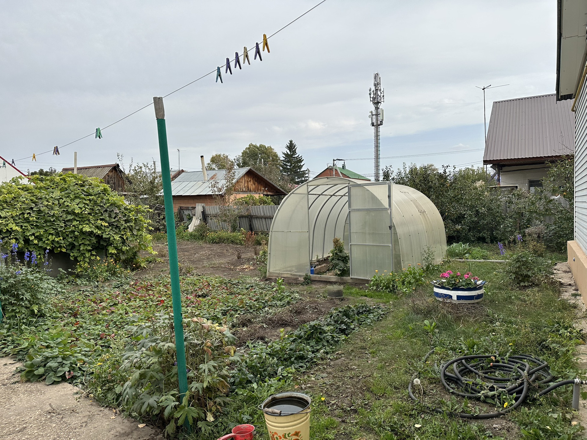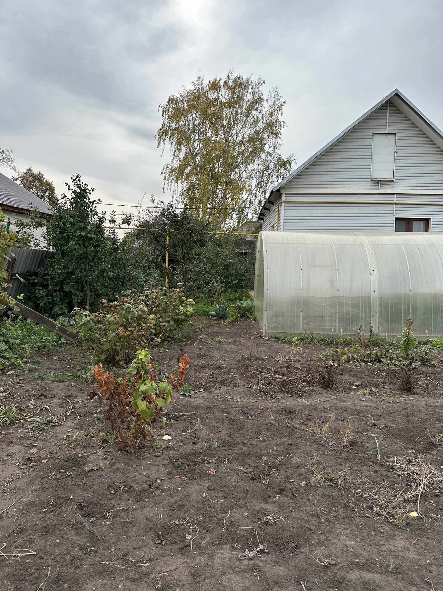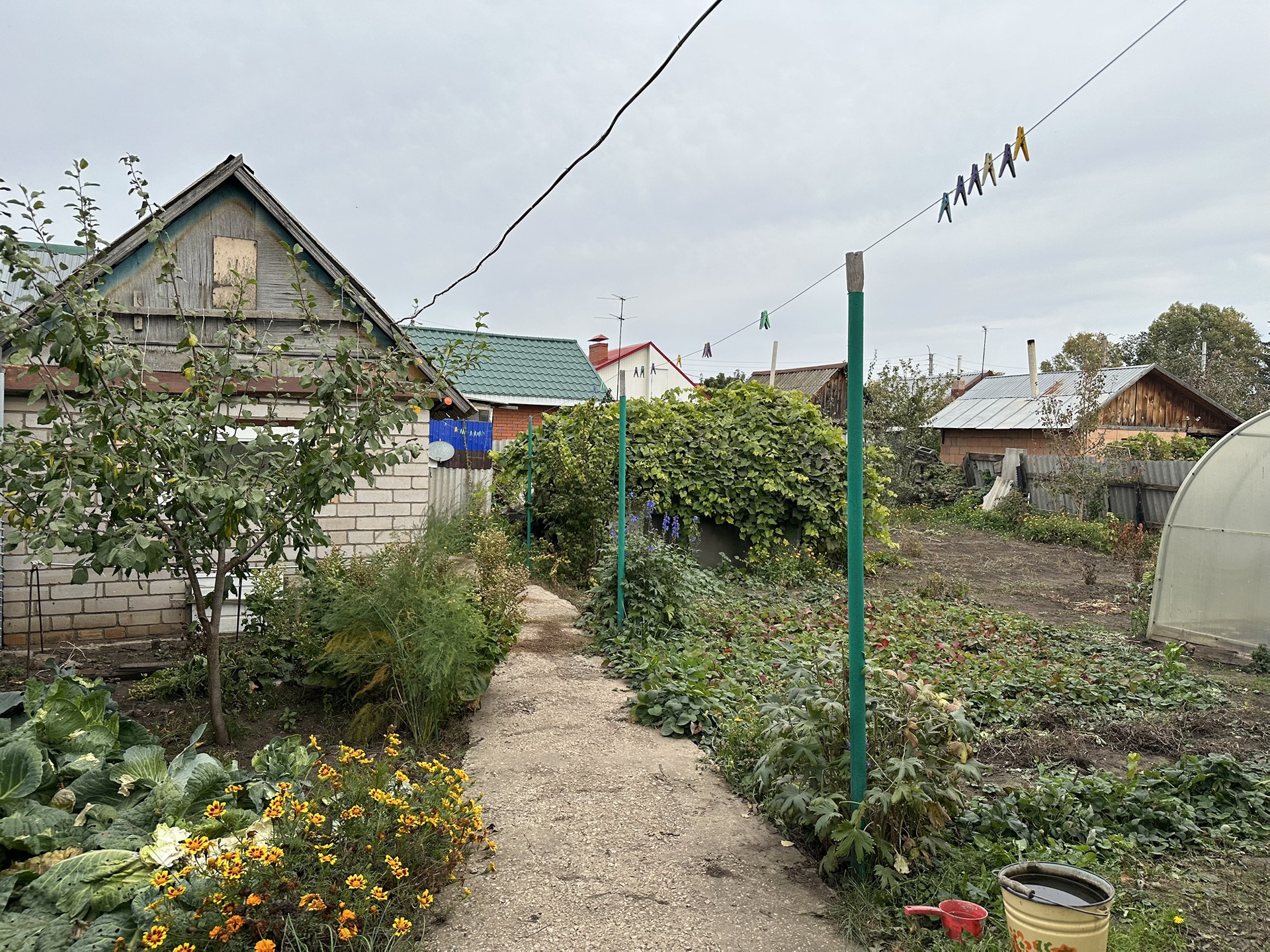 Много насаждений: малина, клубника, два вида винограда, смородина, абрикос, черешня, вишня, слива, крыжовник, груша, яблоки.