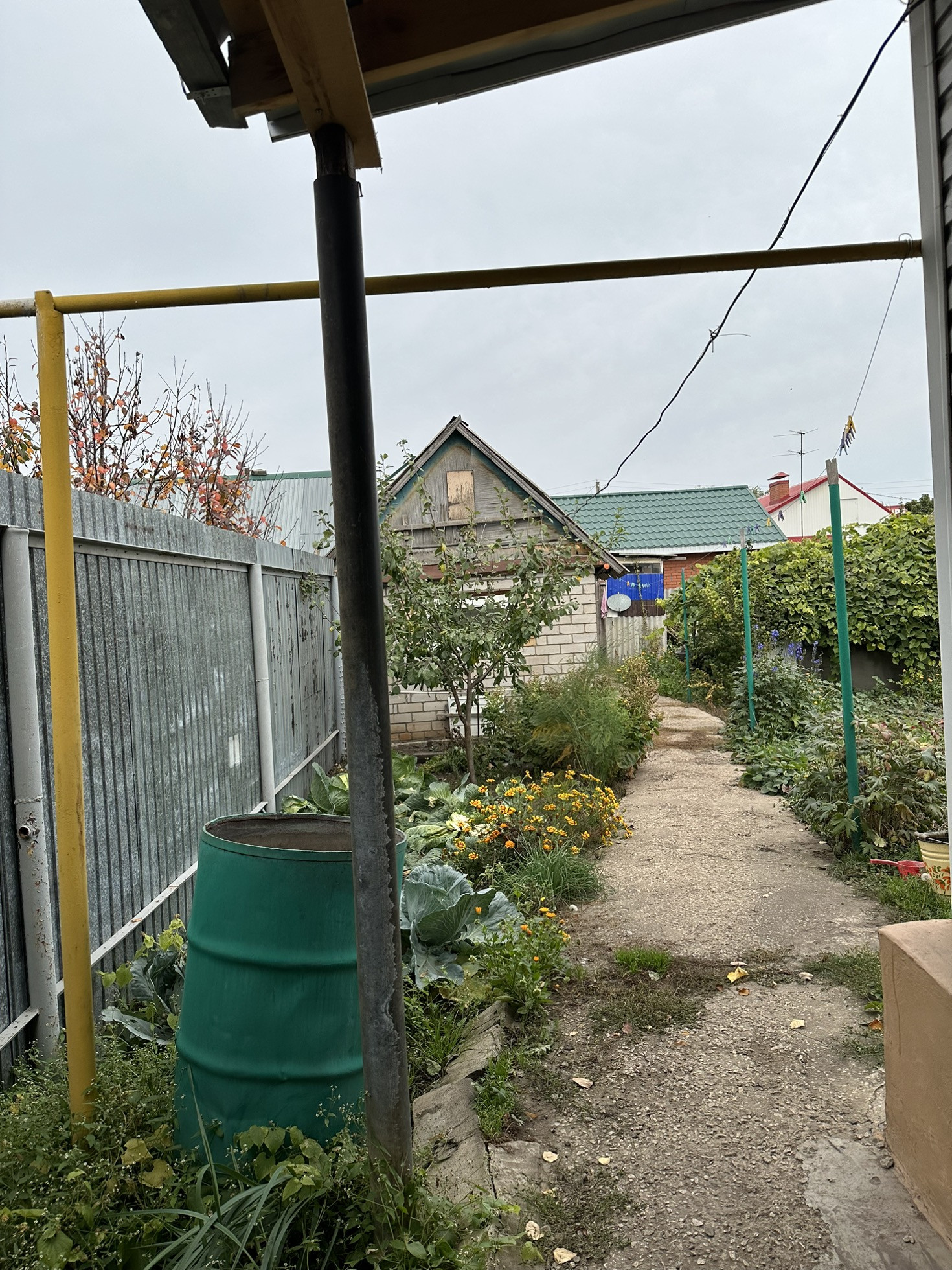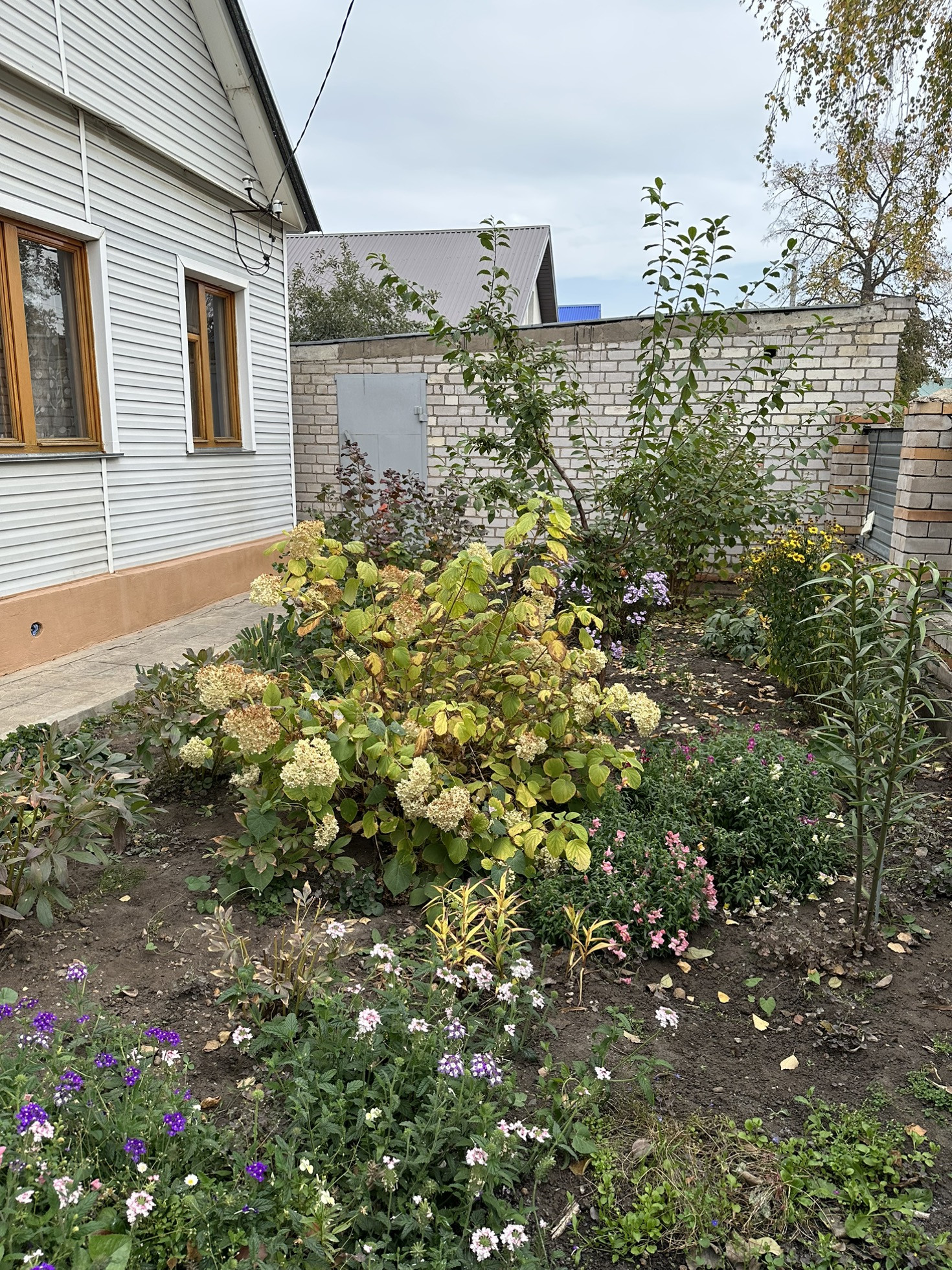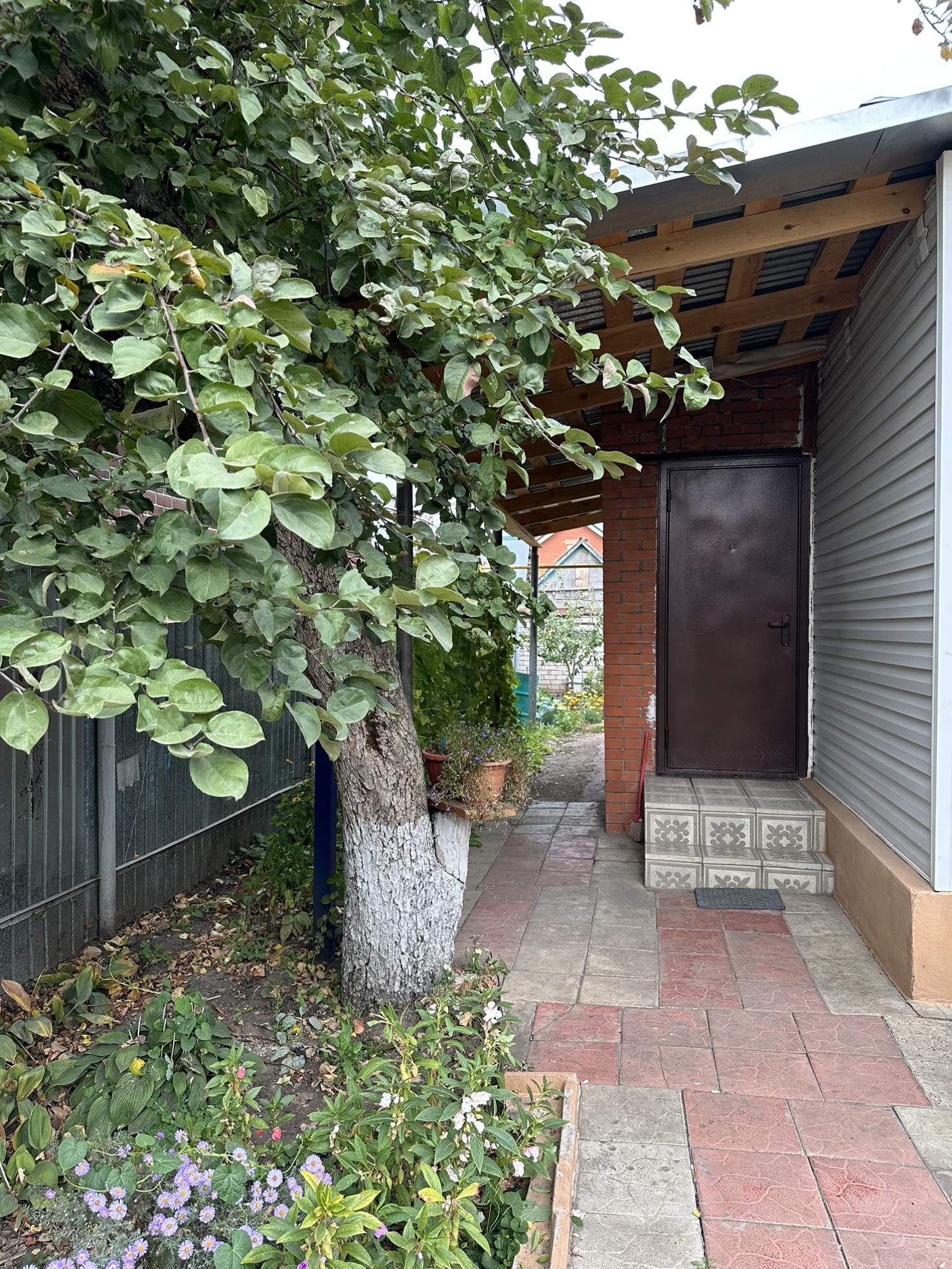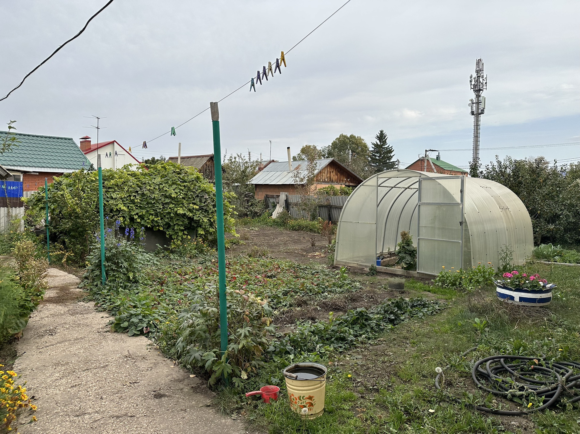 Много насаждений: малина, клубника, два вида винограда, смородина, абрикос, черешня, вишня, слива, крыжовник, груша, яблоки.